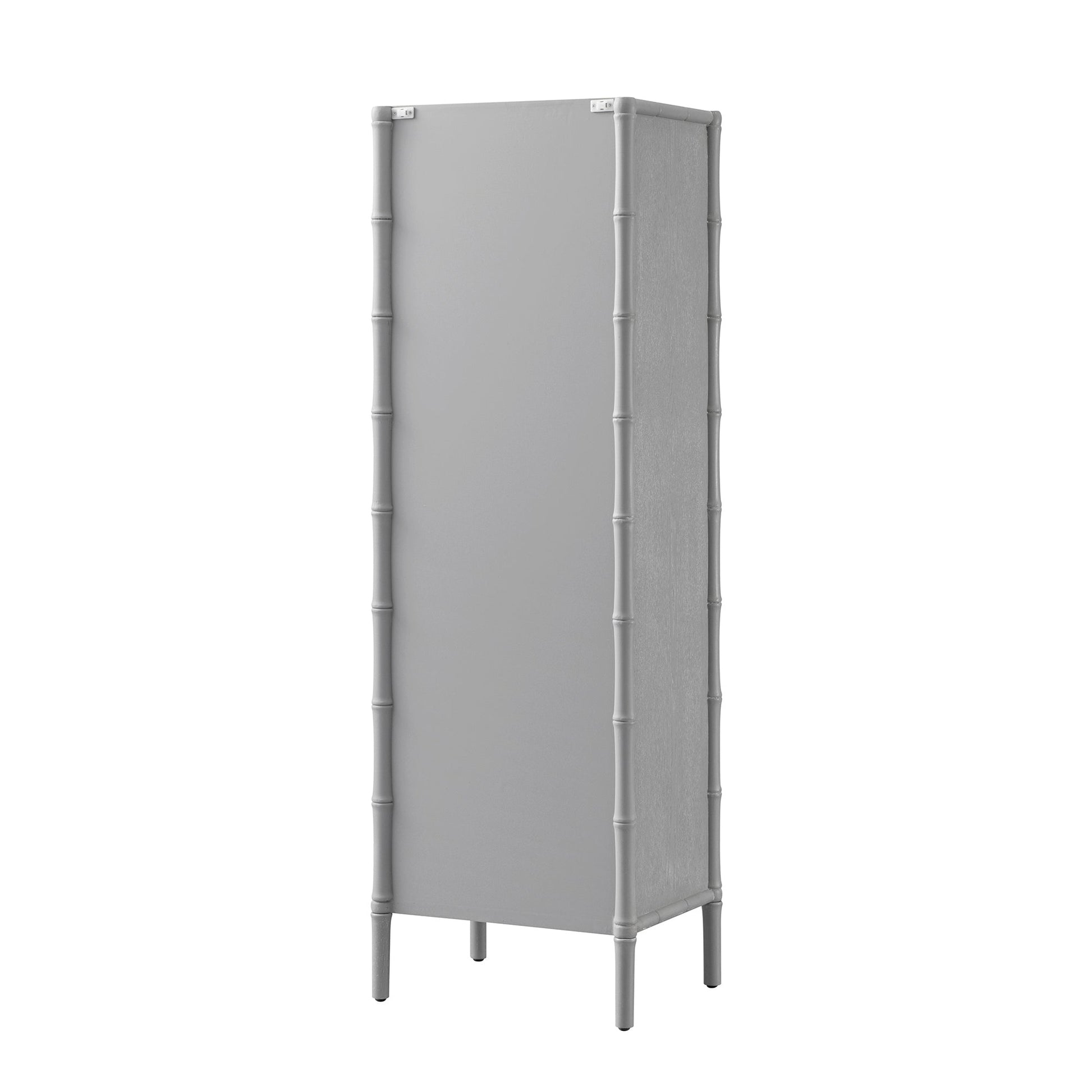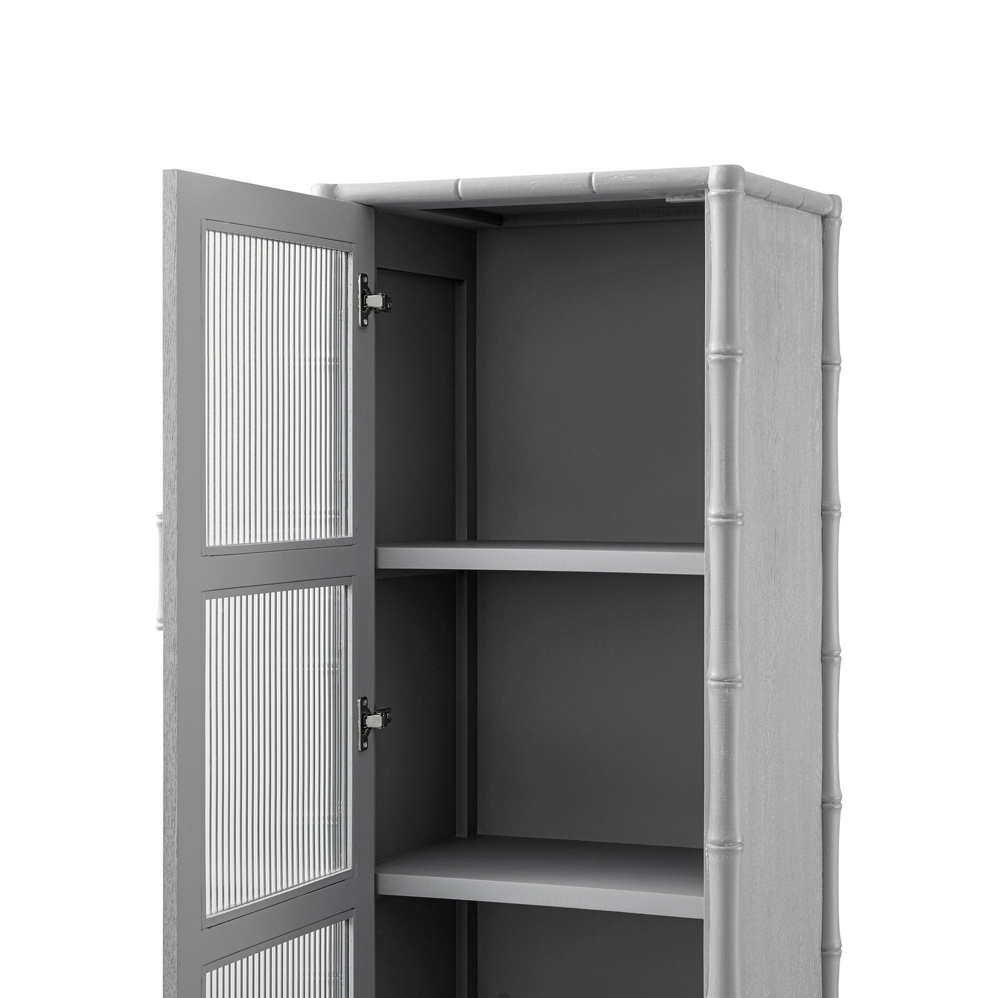 Armoire 1 porte Elstowe en imitation bambou et verre cannelé, gris chaud