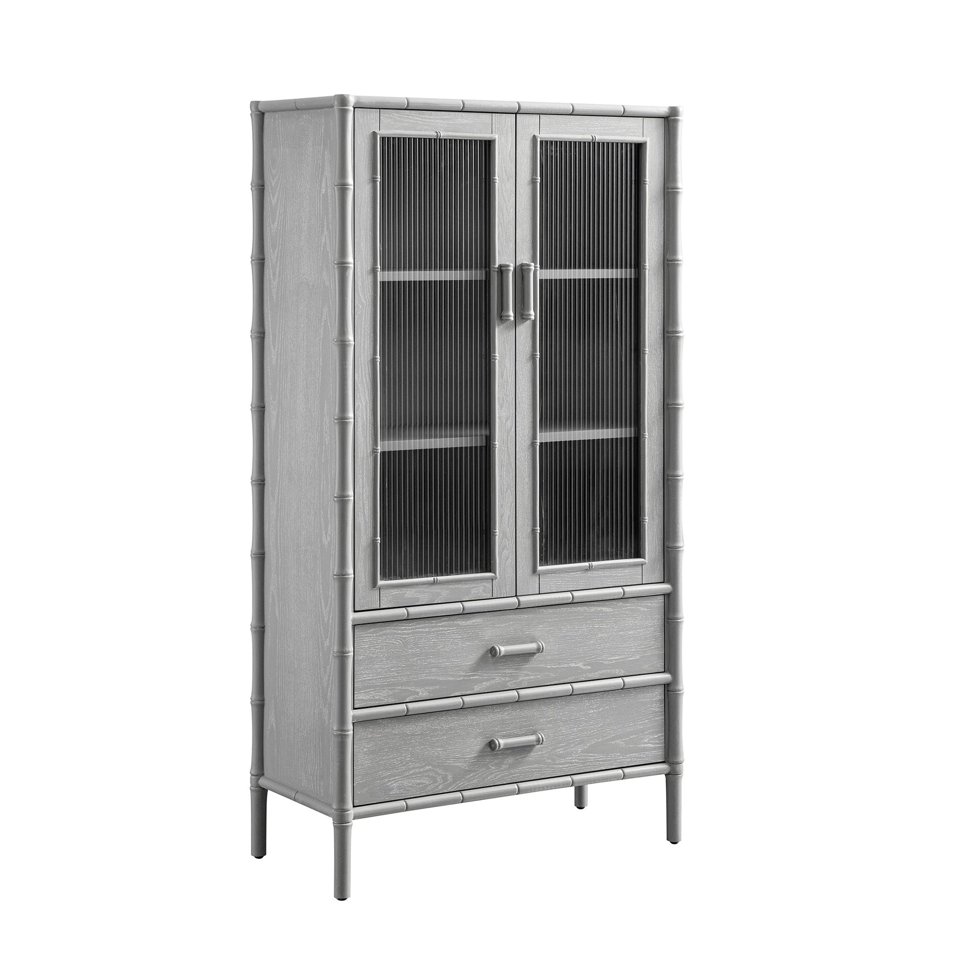 Armoire 2 portes Elstowe en imitation bambou et verre cannelé, gris chaud