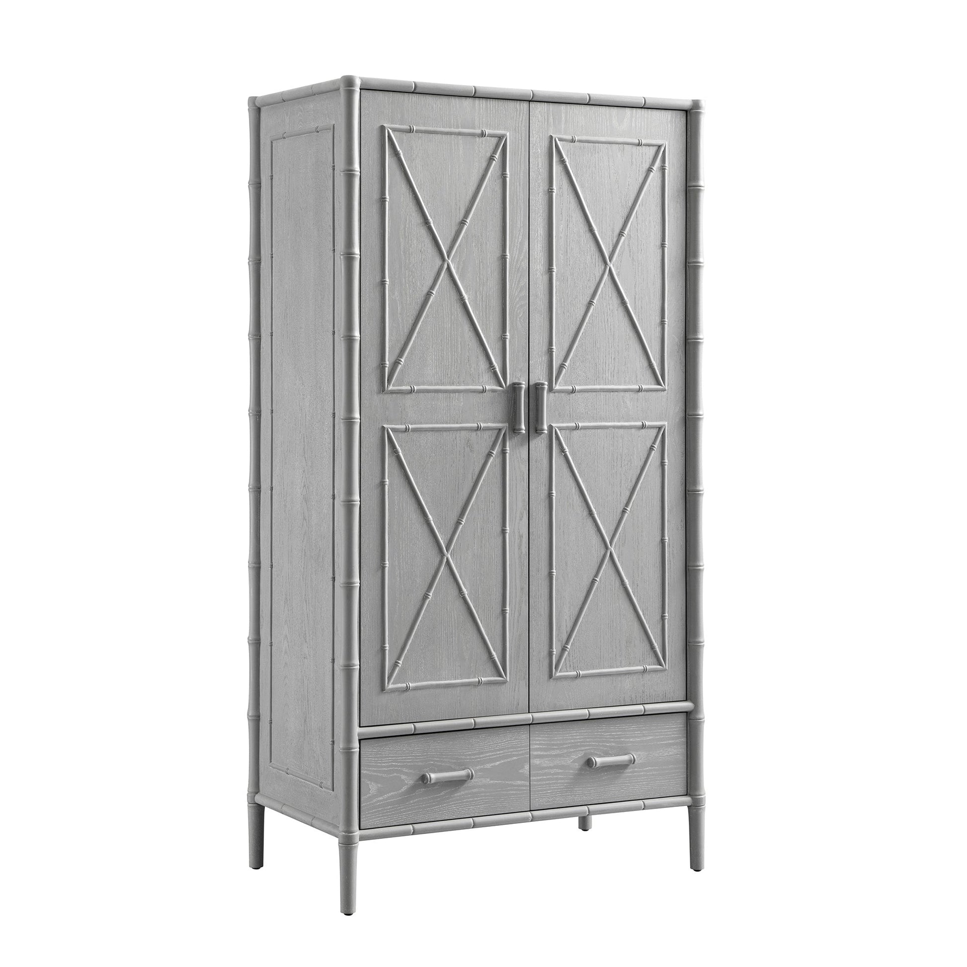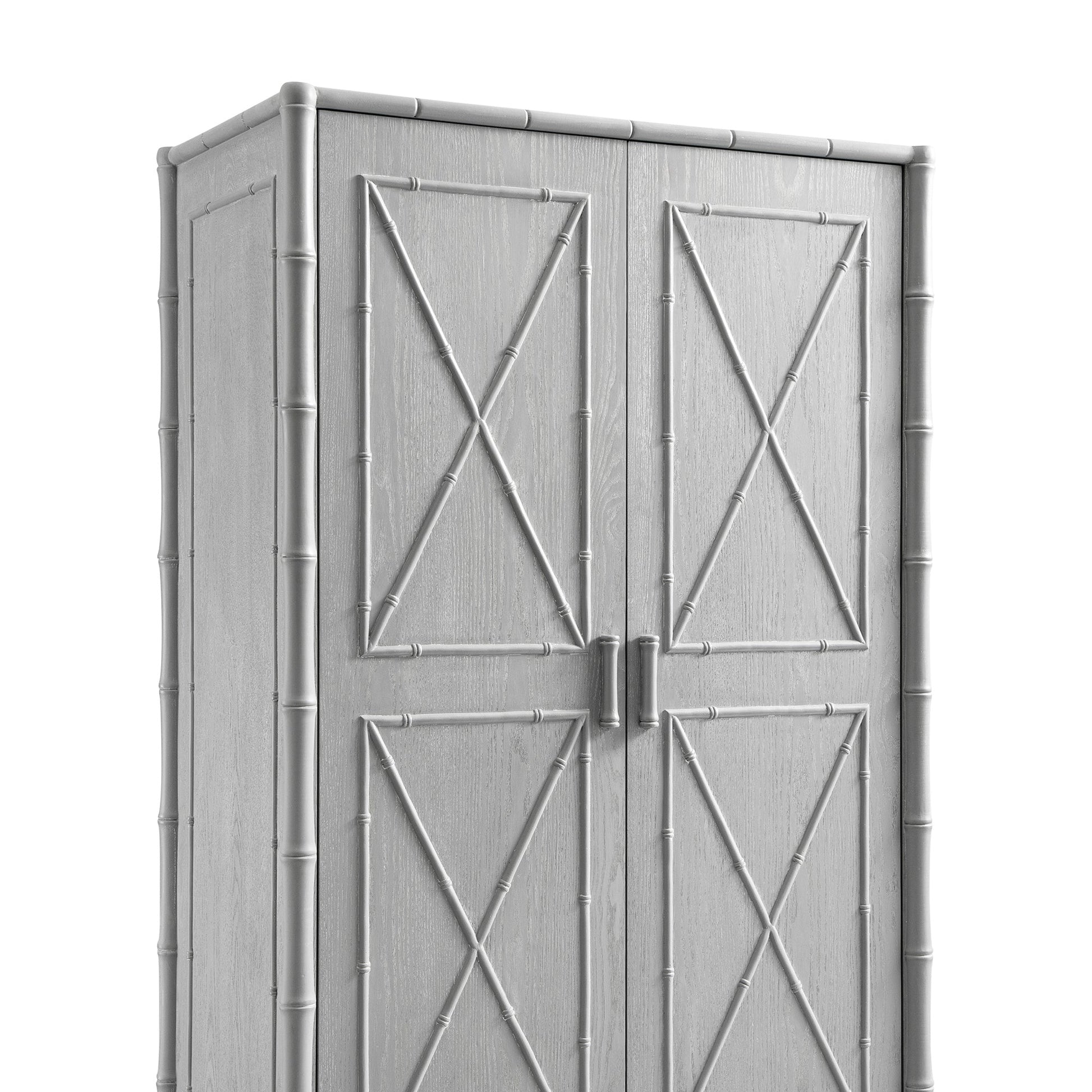 Complétez le look : sur la photo avec l'armoire double en faux bambou gris chaud Elstowe, nous voyons notre couvre-lit en velours de coton matelassé à fleurs crème Maison et notre couvre-lit réversible en coton matelassé à motifs cachemire camel Juliette .