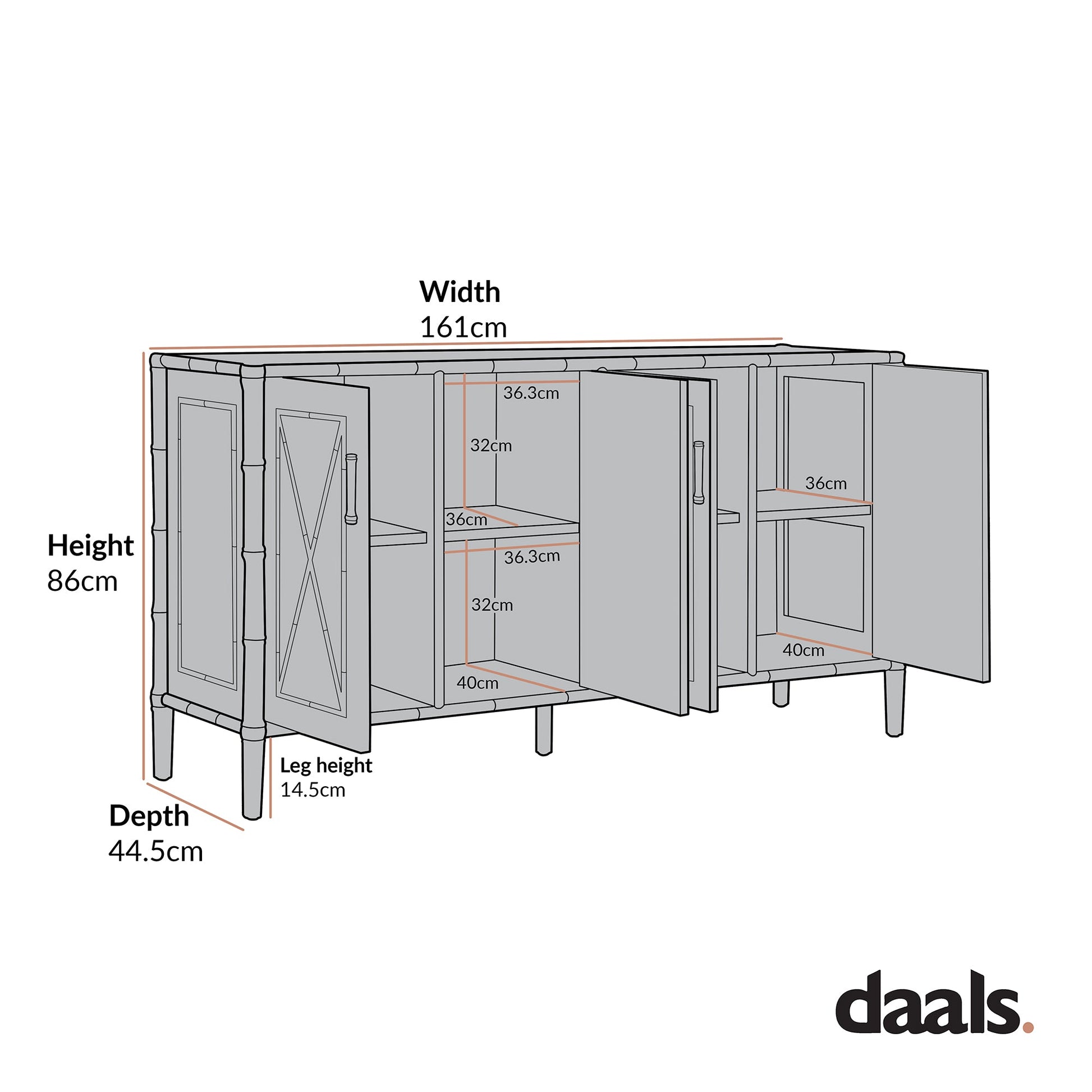 - Les quatre portes s'ouvrent sur de nombreux espaces de rangement avec des étagères, que vous organisiez la vaisselle et le linge de table dans la salle à manger, ou que vous rangiez des vêtements, du linge de lit ou des livres dans une chambre ou un salon.