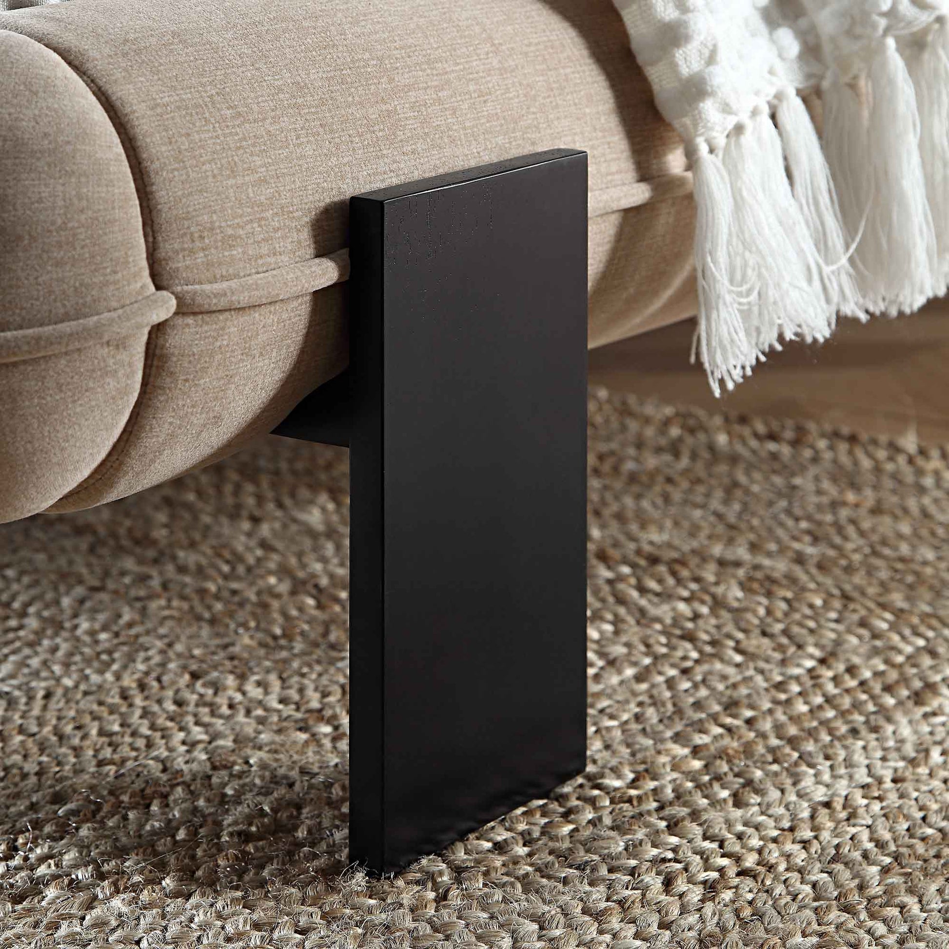 - Les pieds en bois noir complètent la silhouette épurée du lit.