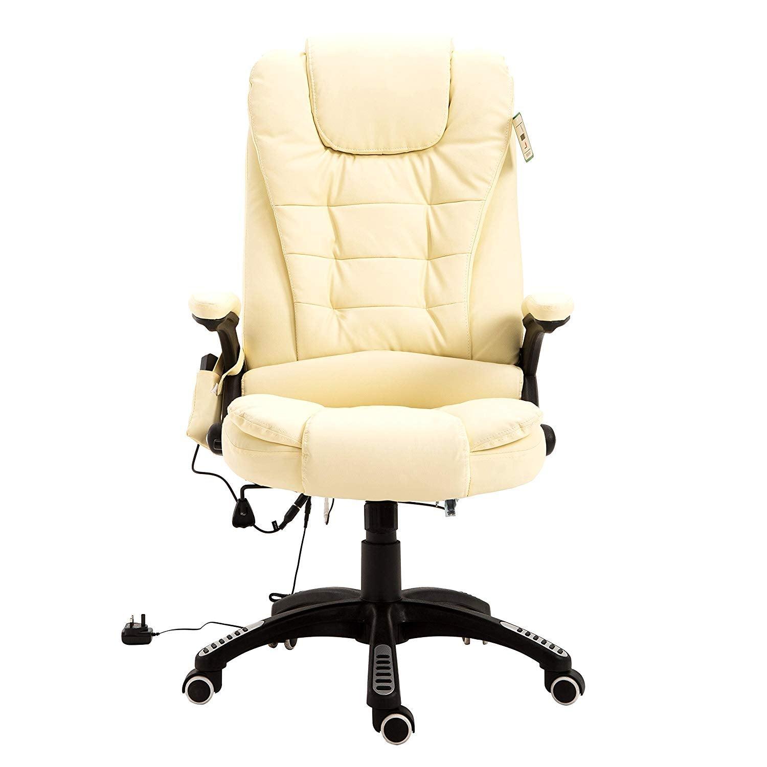 Fauteuil de bureau pivotant et inclinable, rembourré et avec fonction de massage vibrant, MM17 Crème