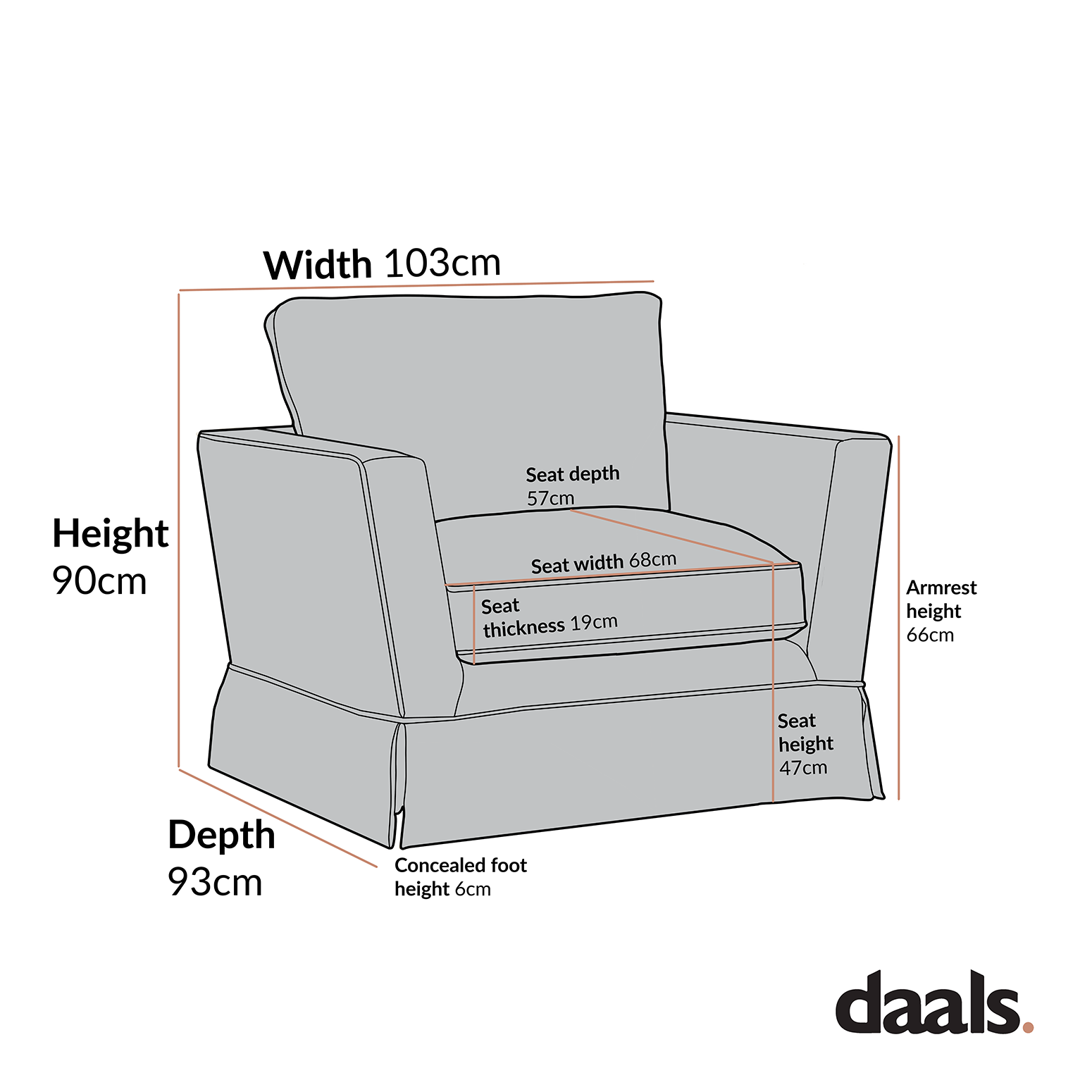 - Dimensions du fauteuil : L 103 x P 93 x H 90 cm.