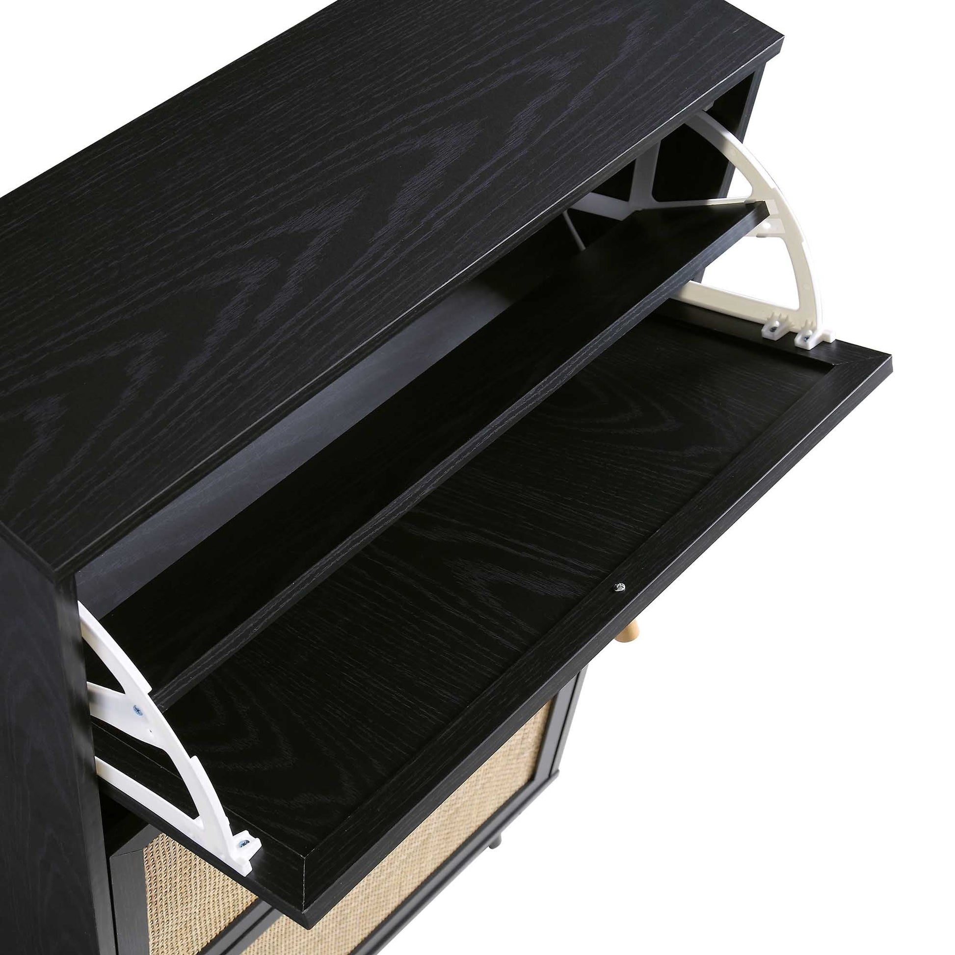 Meuble de rangement à chaussures à 3 niveaux en rotin Frances, noir