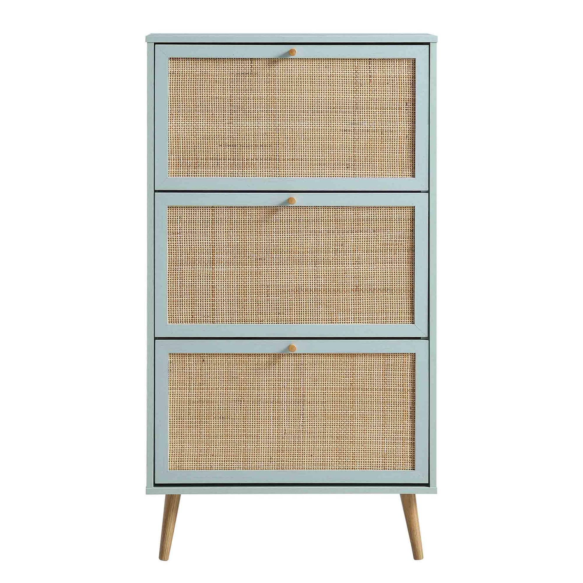 Meuble de rangement à chaussures à 3 niveaux en rotin Frances, menthe