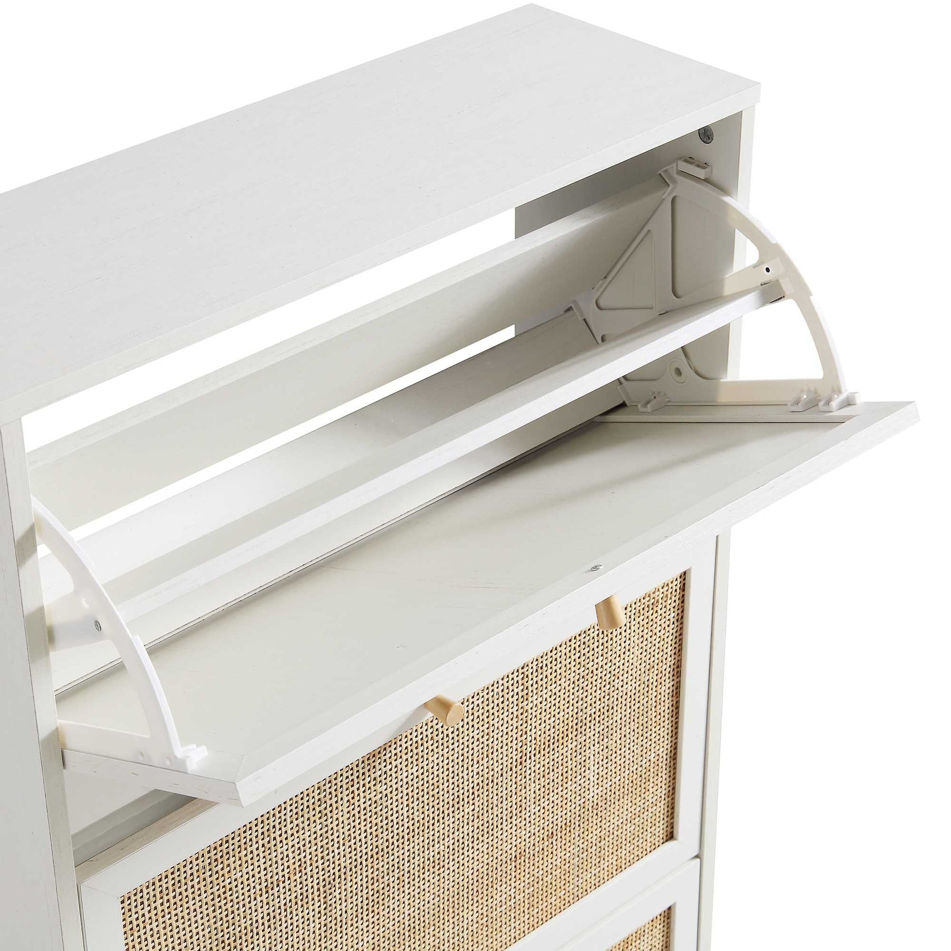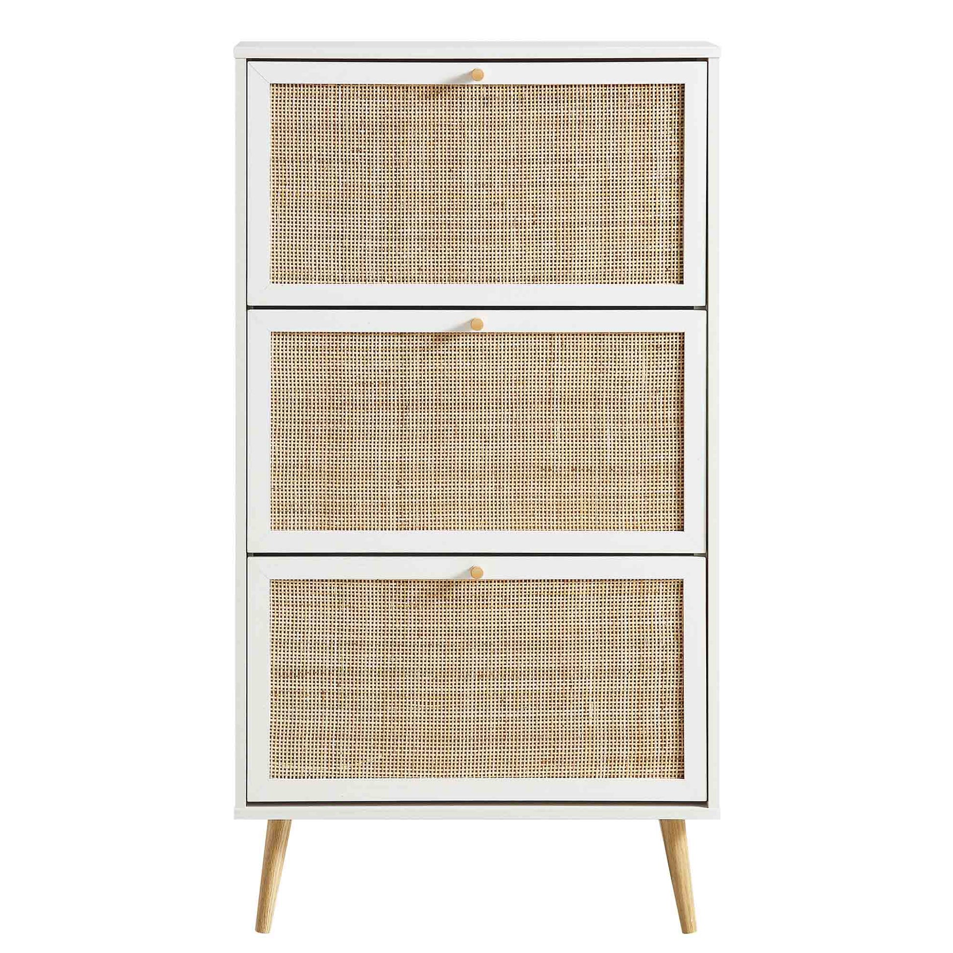 Meuble de rangement à chaussures à 3 niveaux en rotin Frances, blanc