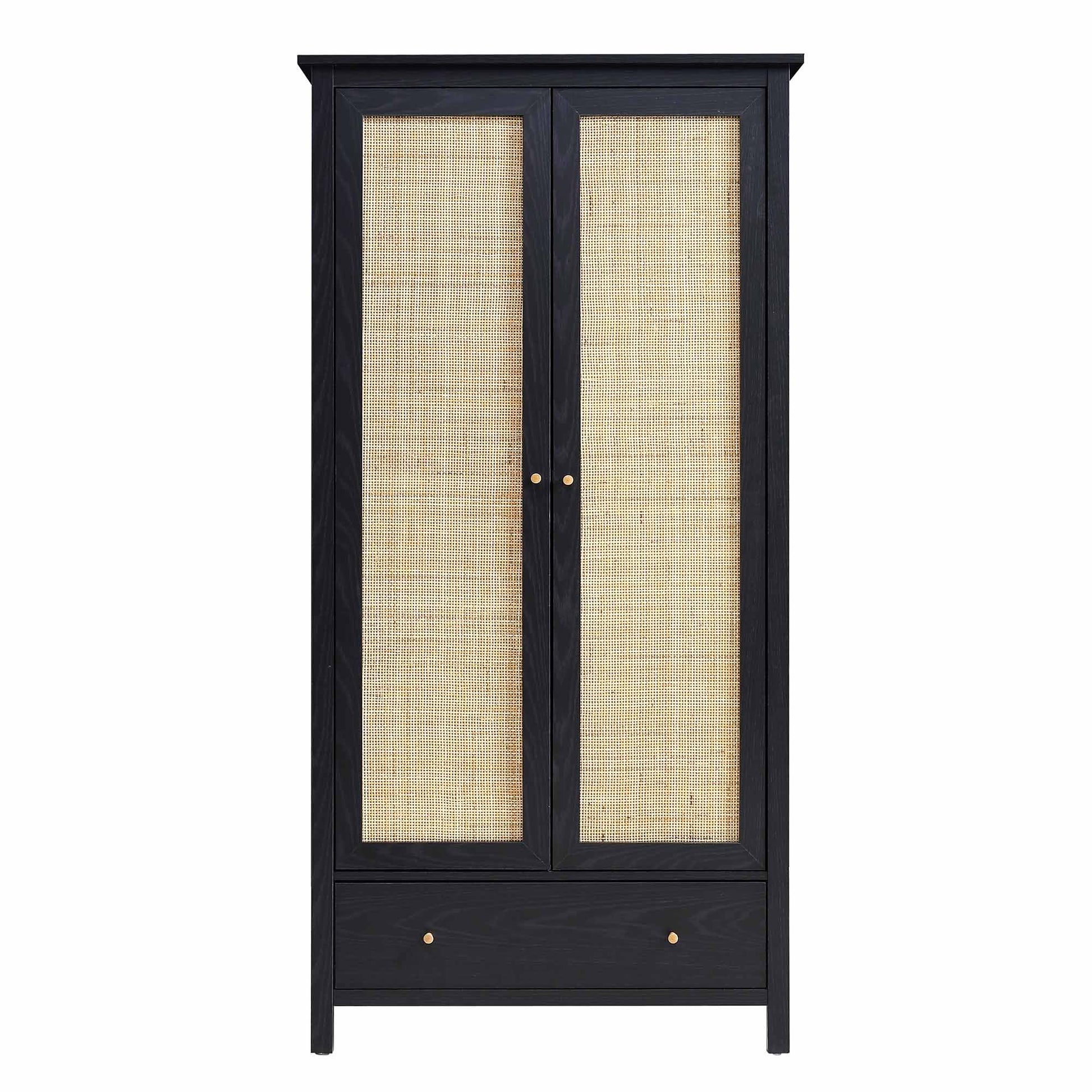 Armoire double en rotin Frances avec 1 tiroir, noire