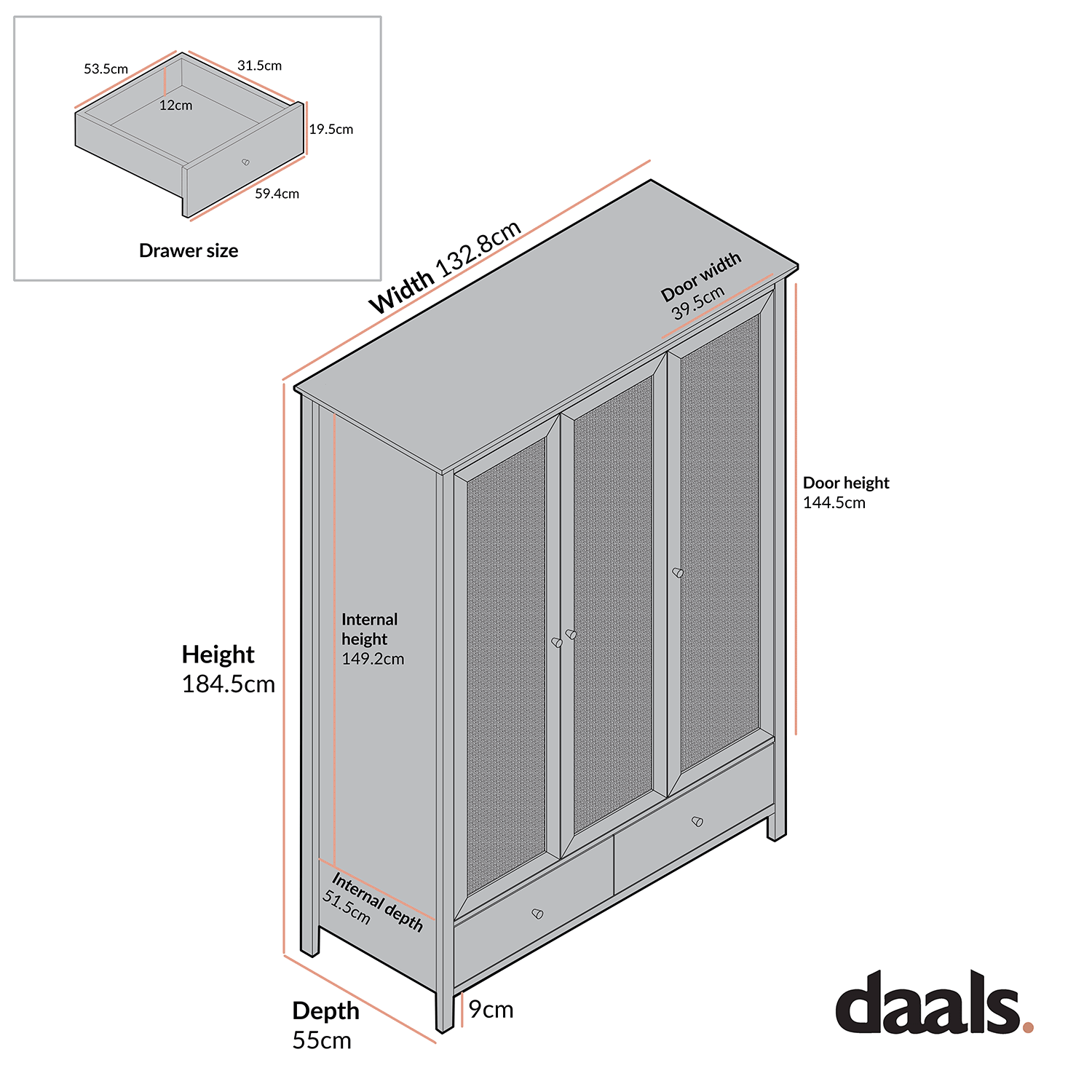 - Fabriquée à partir de rotin naturel et de bois, notre armoire triple Frances arbore un magnifique style bohème.
