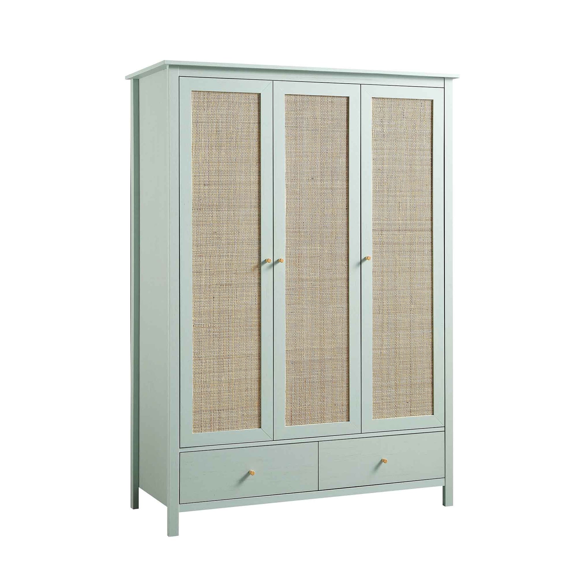 Armoire triple en rotin Frances avec 2 tiroirs, menthe