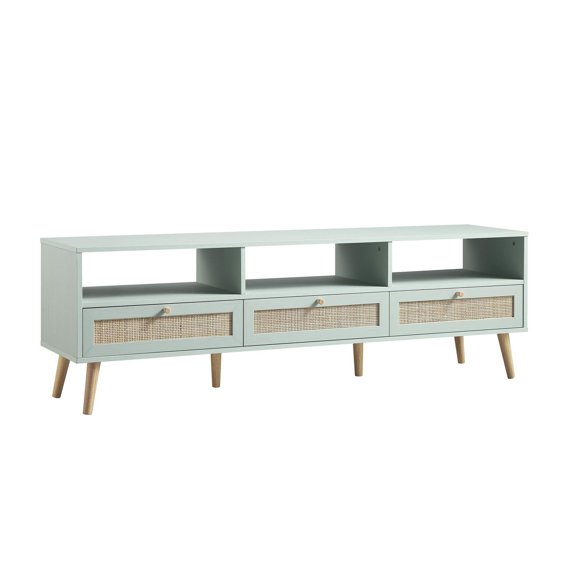 Meuble TV 3 tiroirs en rotin tressé Frances 160 cm, menthe