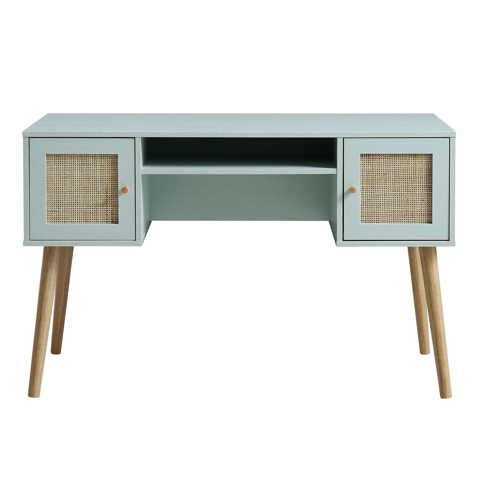 Bureau 2 portes en rotin tressé Frances, menthe