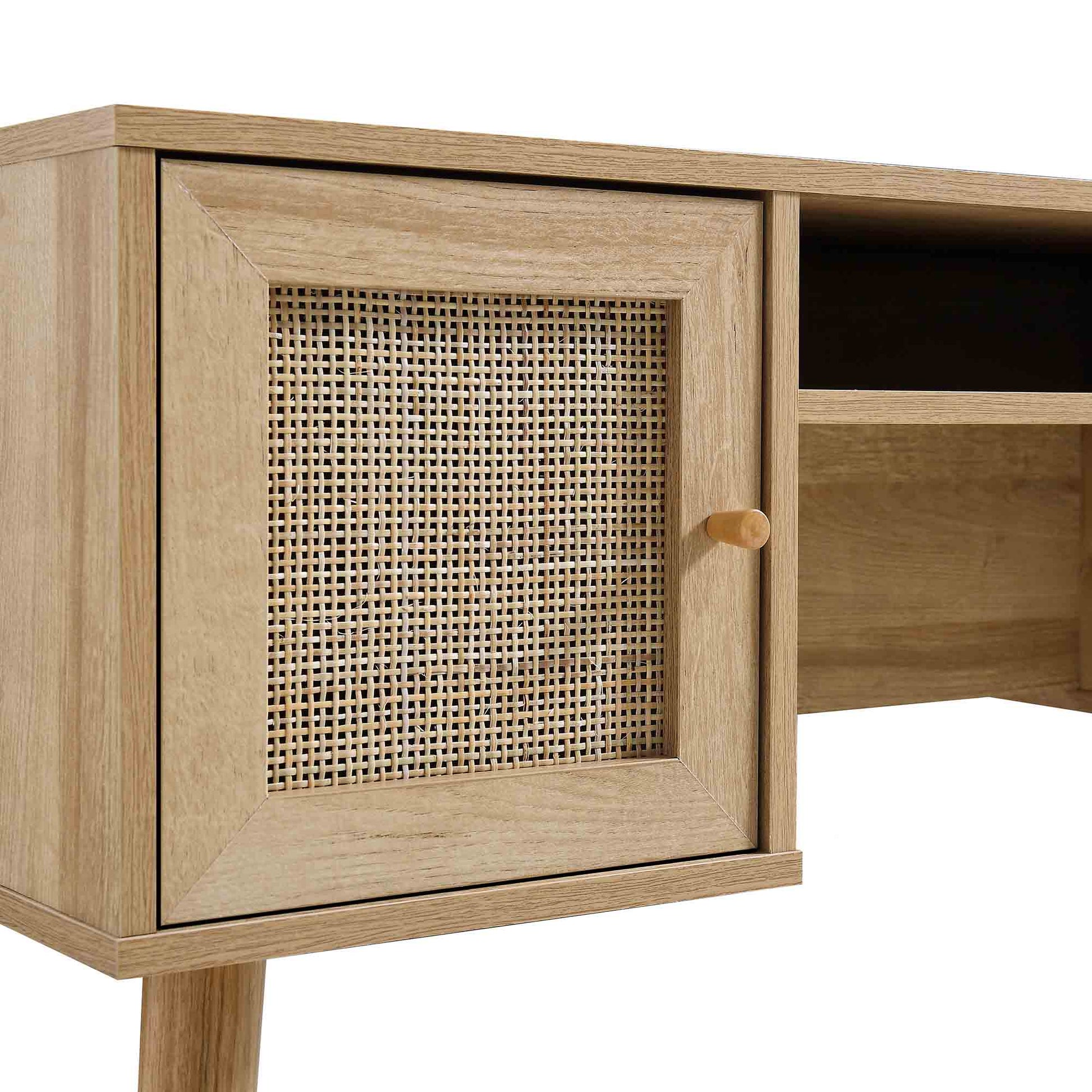 - Les inserts en rotin naturel tissé à la main sur les portes des placards se coordonnent avec la poignée et les pieds en bois massif.
