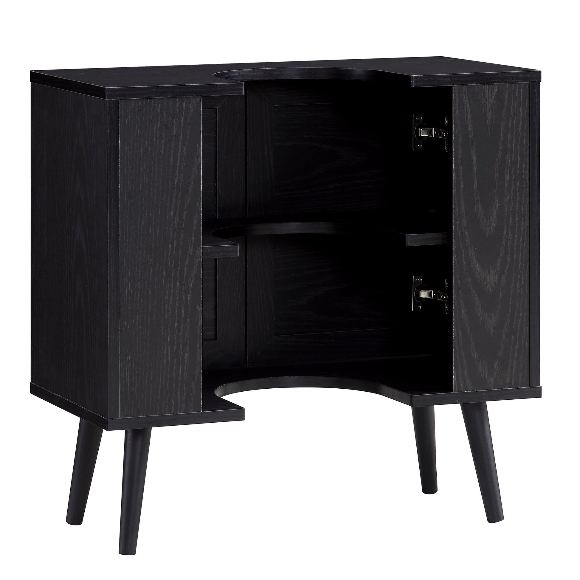 Meuble sous-évier de salle de bain 2 portes en rotin tressé Frances, noir