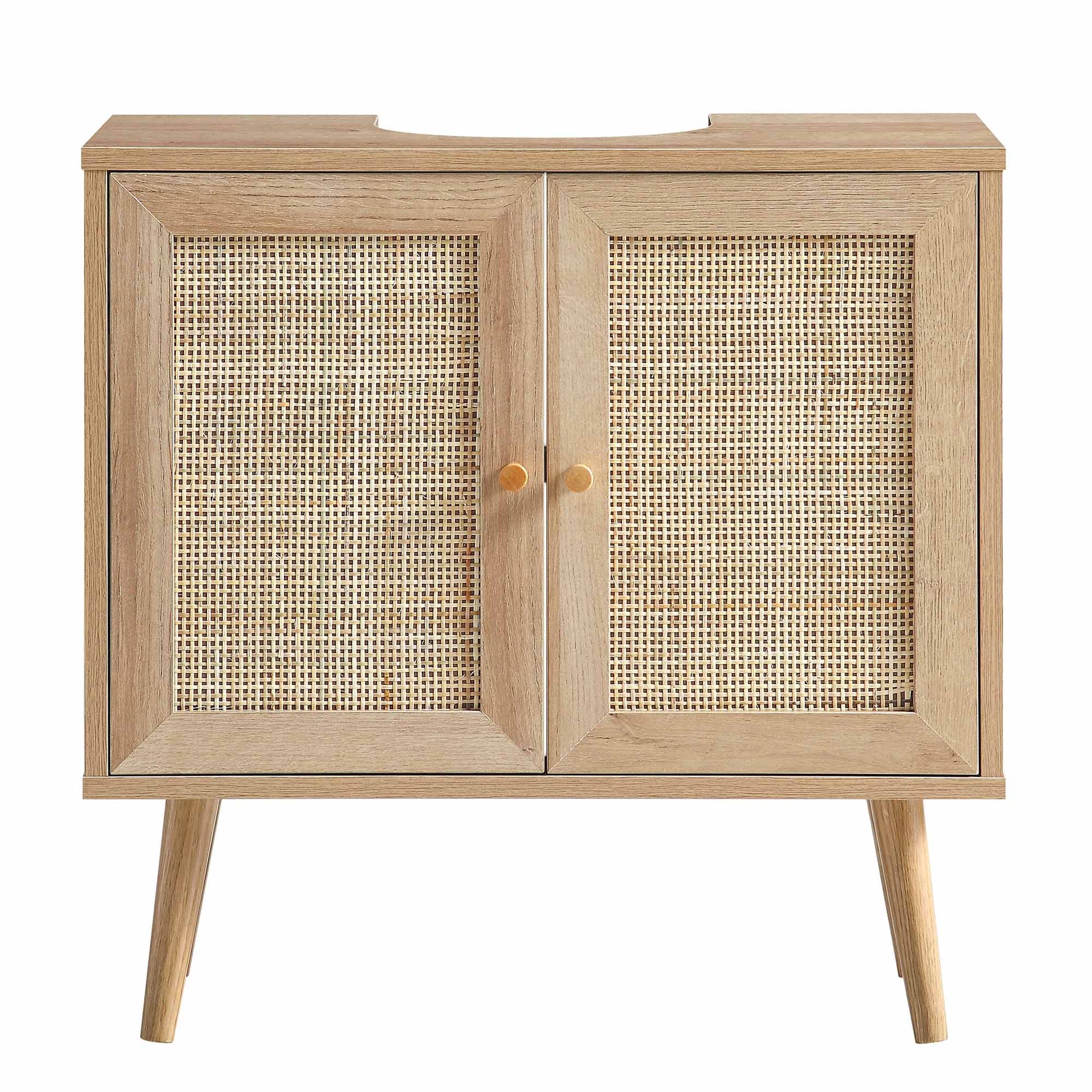 - Avec son magnifique rotin naturel tissé à la main, notre meuble-lavabo sous-évier à 2 portes Frances est la solution de rangement élégante et parfaite pour votre salle de bain.