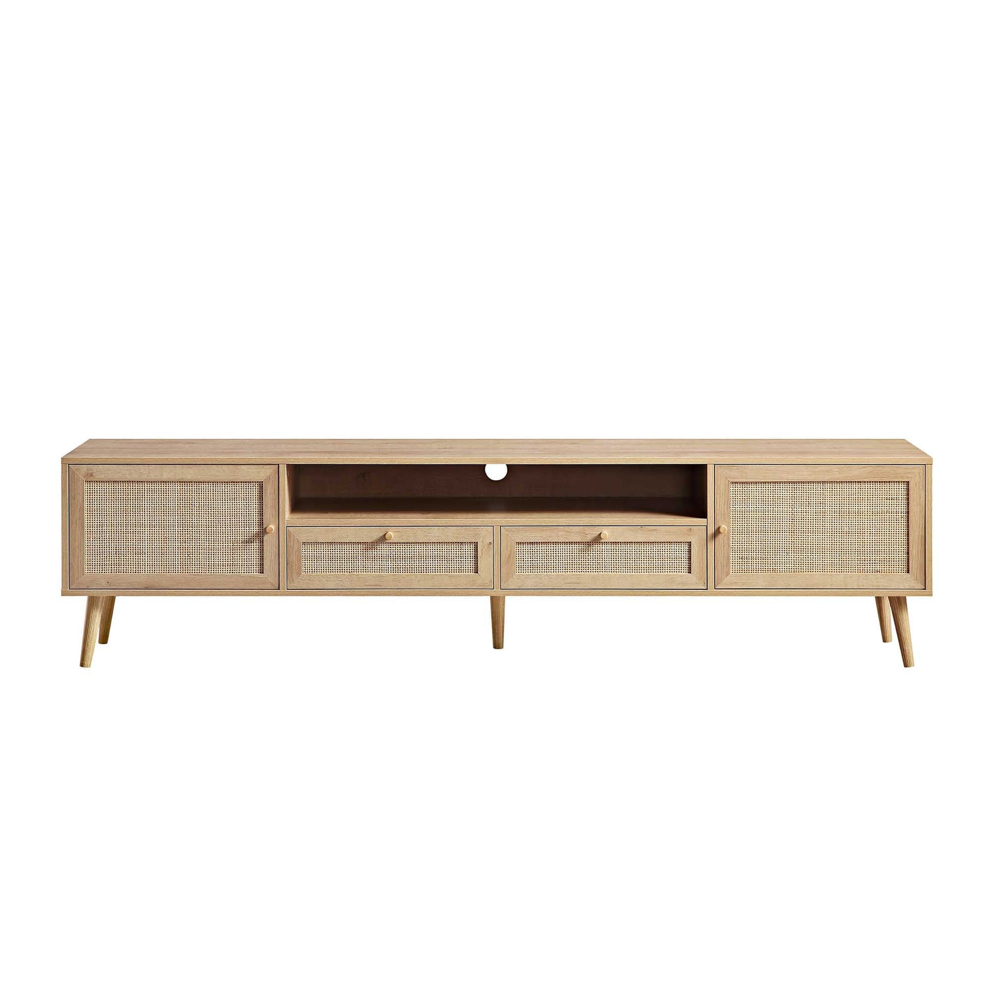 Meuble TV en rotin tressé Frances, largeur 200 cm, naturel