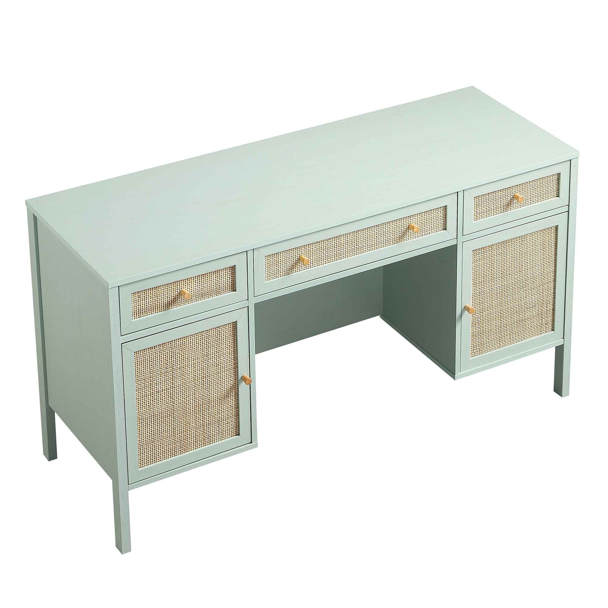 Bureau 3 tiroirs en rotin tressé Frances, menthe