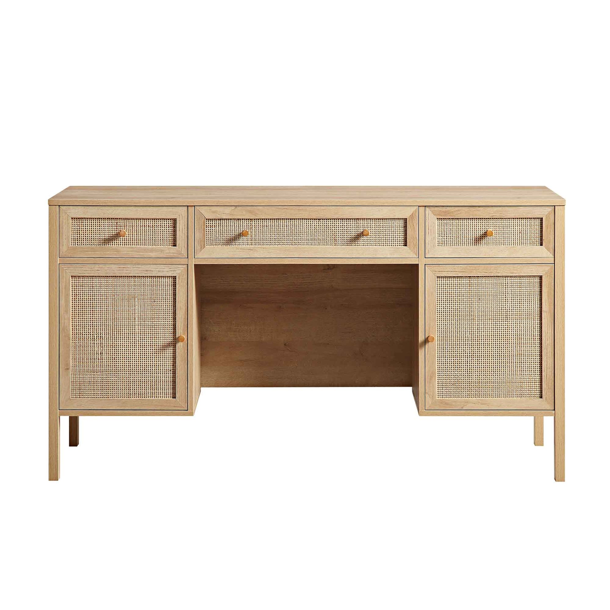 Bureau 3 tiroirs en rotin tressé Frances, naturel