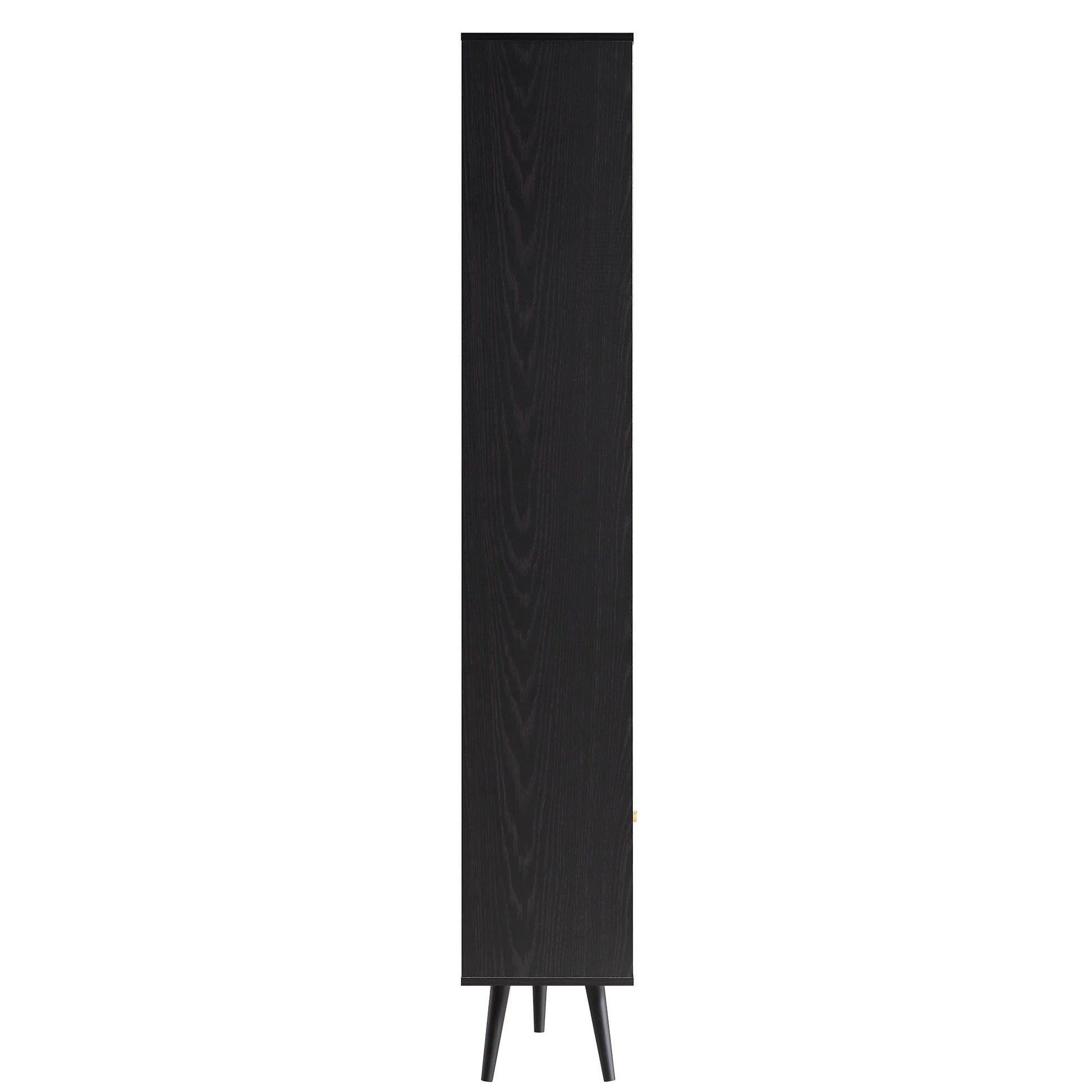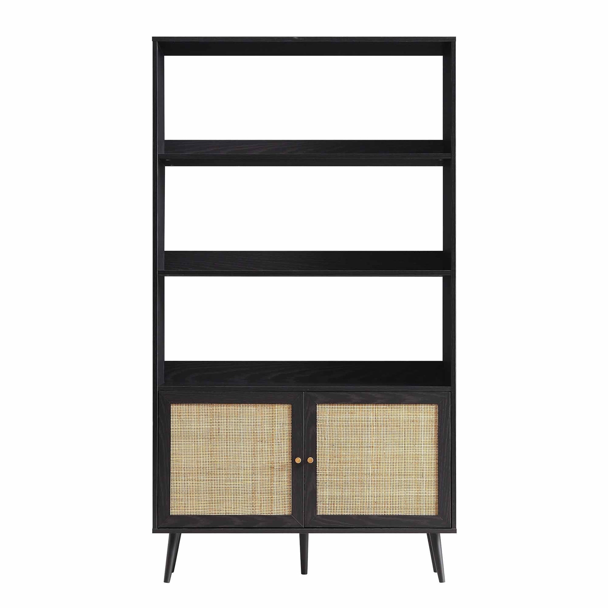 Bibliothèque en rotin tressé Frances avec portes, noir