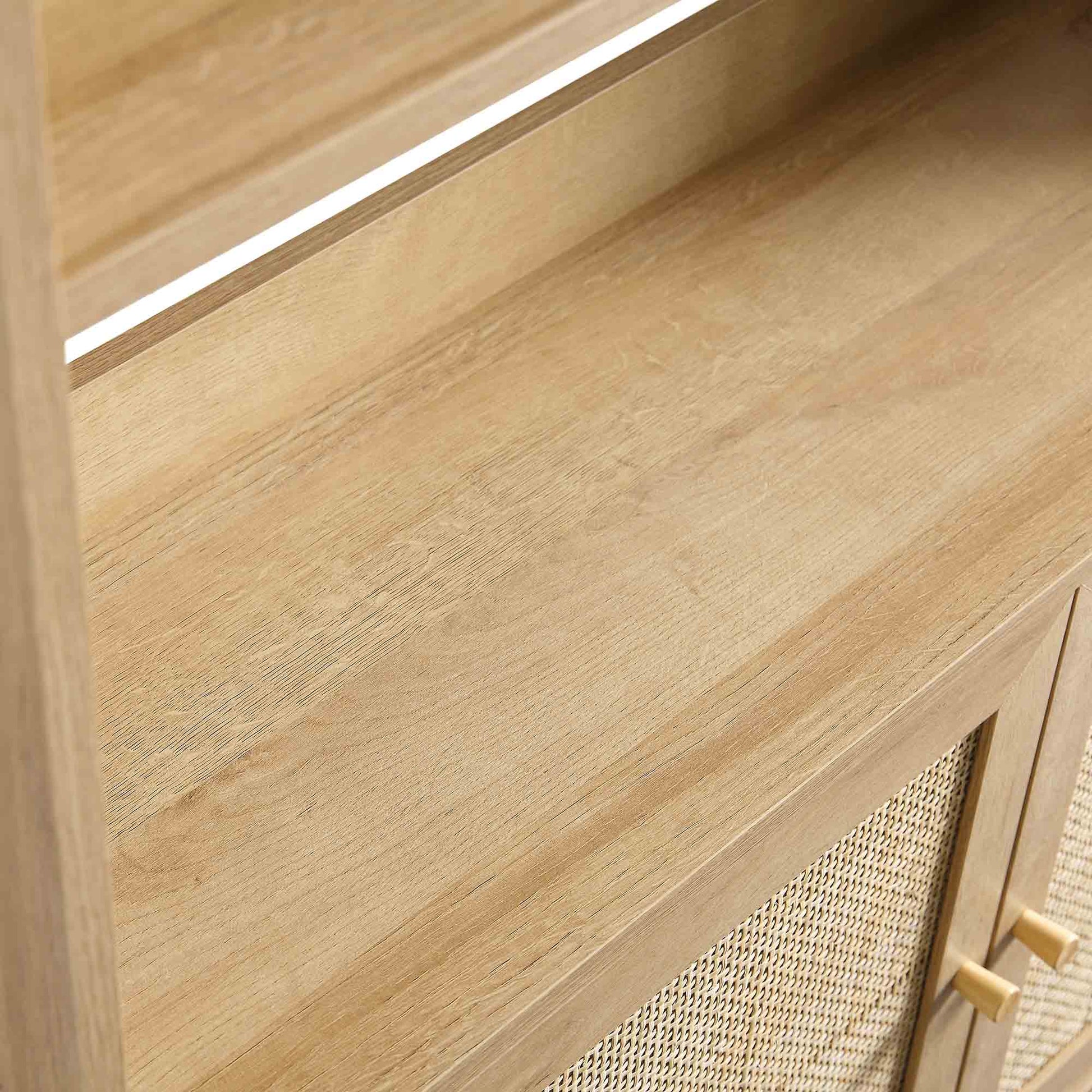 - Les inserts en rotin naturel tissés à la main sur les portes se coordonnent avec les poignées de porte en bois massif.