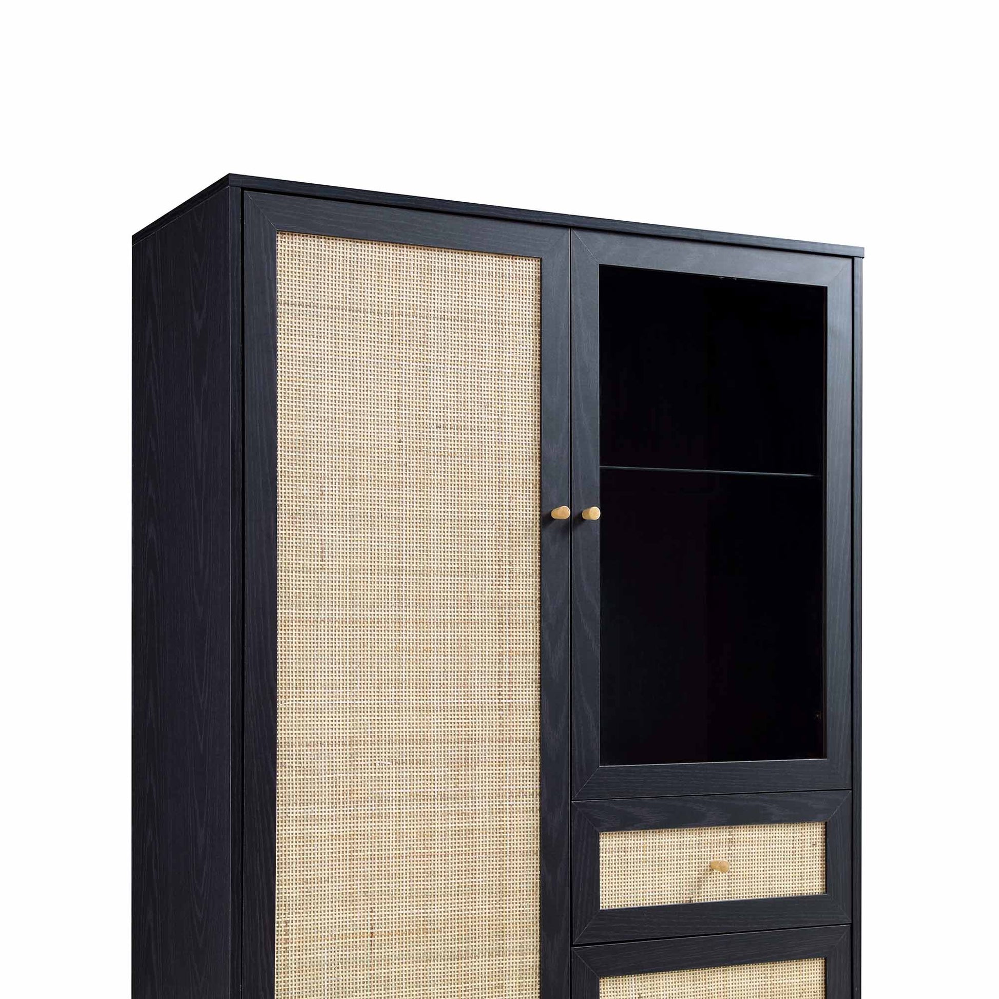 - Façade de la porte de l'armoire : rotin naturel tressé à la main