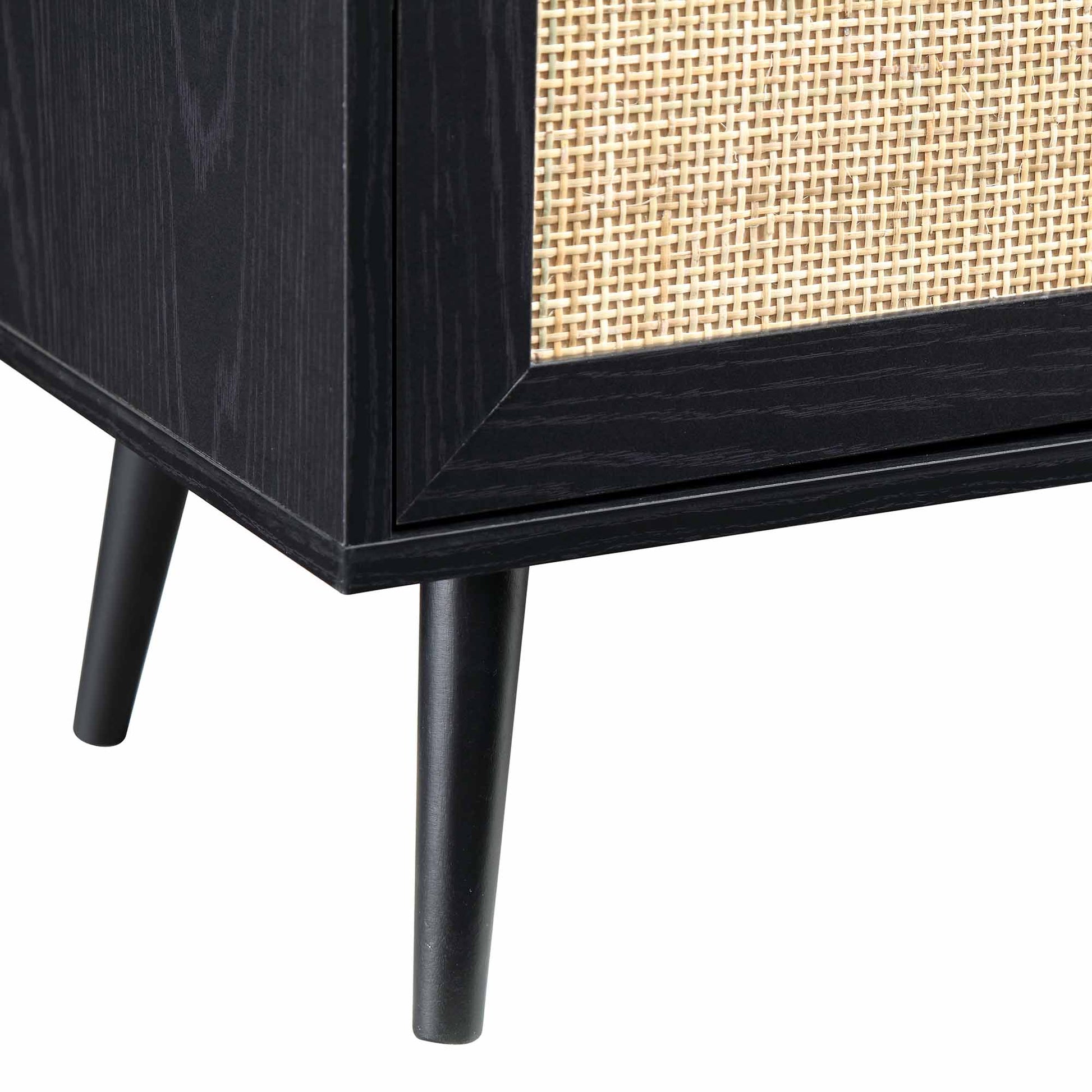 - Les inserts en rotin naturel tissés à la main sur la porte de l'armoire et le tiroir se coordonnent avec la poignée et les pieds en bois massif pour créer un look chaleureux et terreux.