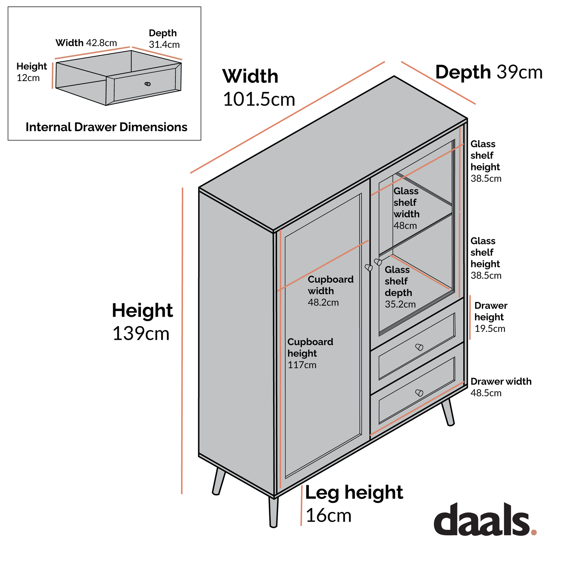 - Dimensions intérieures de l'étagère en verre : L 48 x P 35,2 x H 38,5 cm (hauteur de l'étagère réglable)