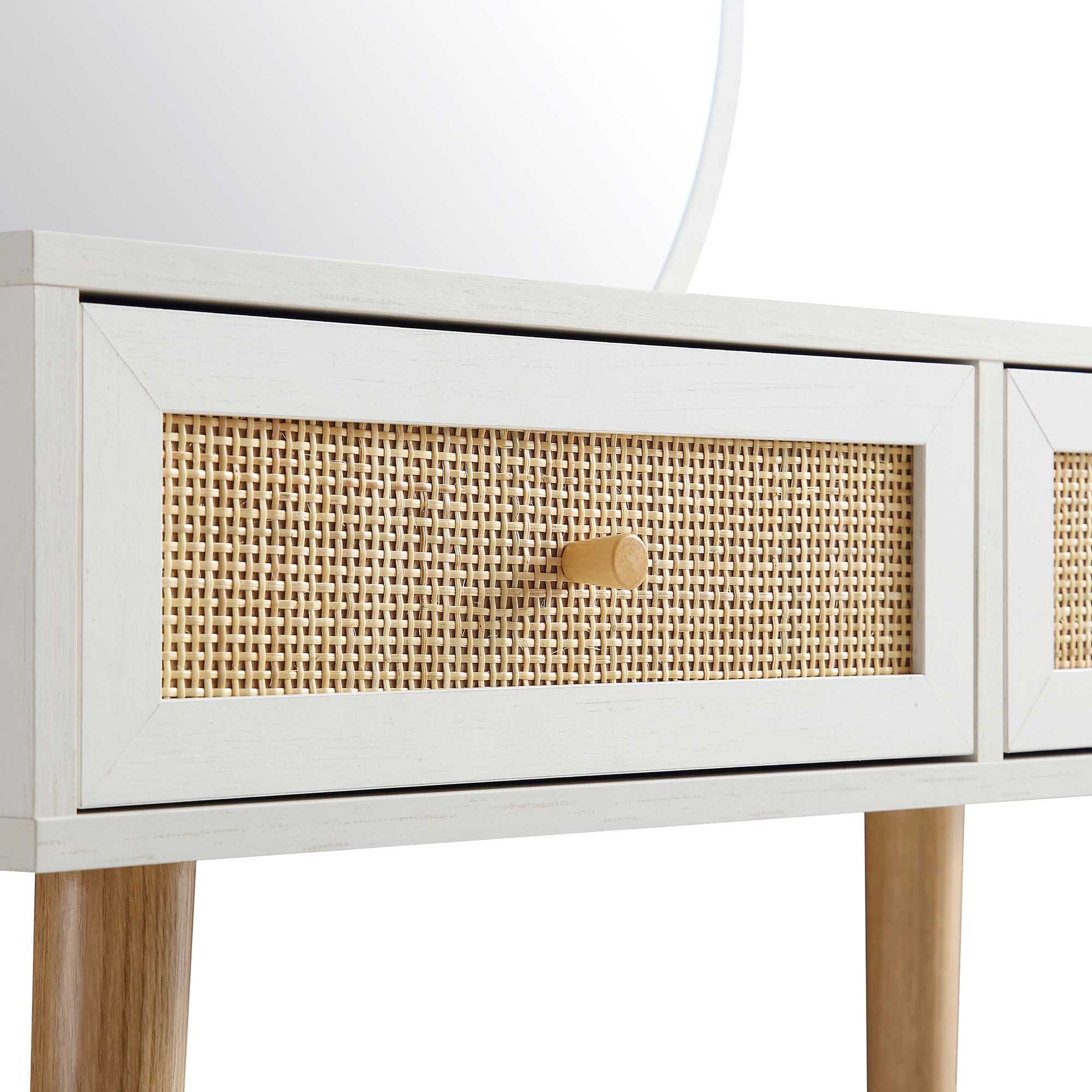Coiffeuse en rotin tressé Frances avec miroir, blanche