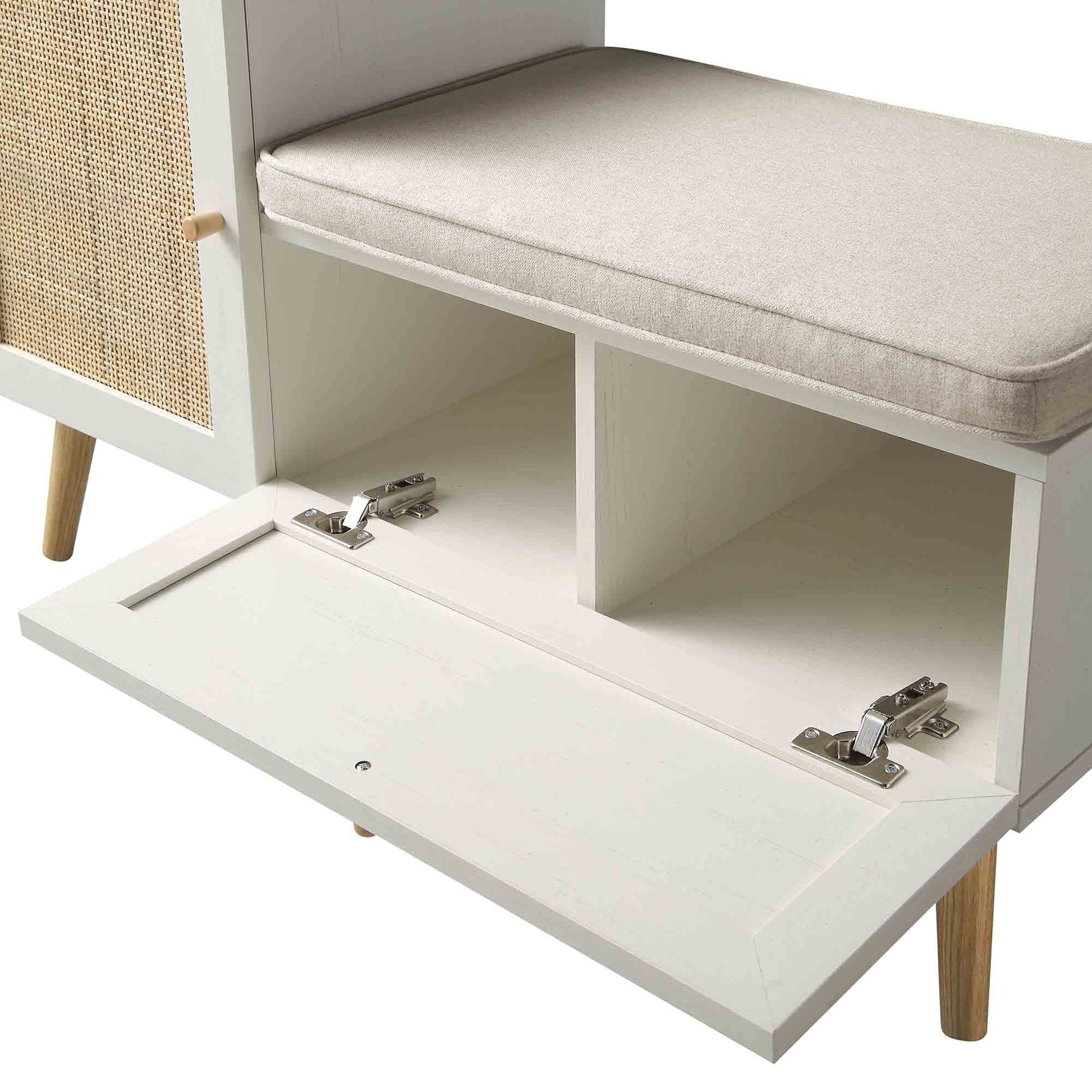 Banc de rangement en rotin tressé Frances avec coussin, blanc