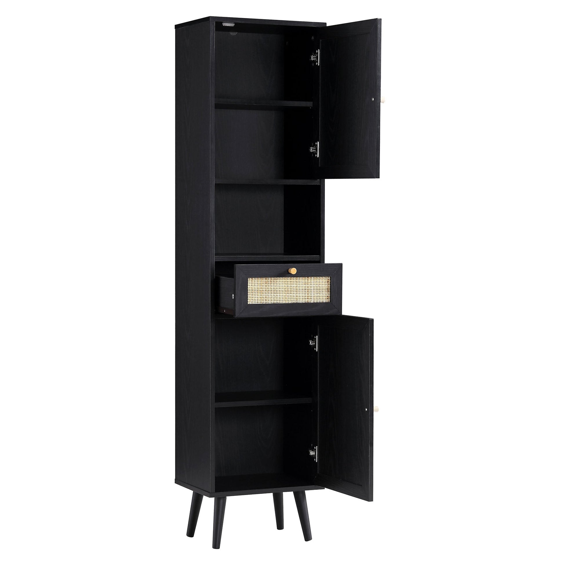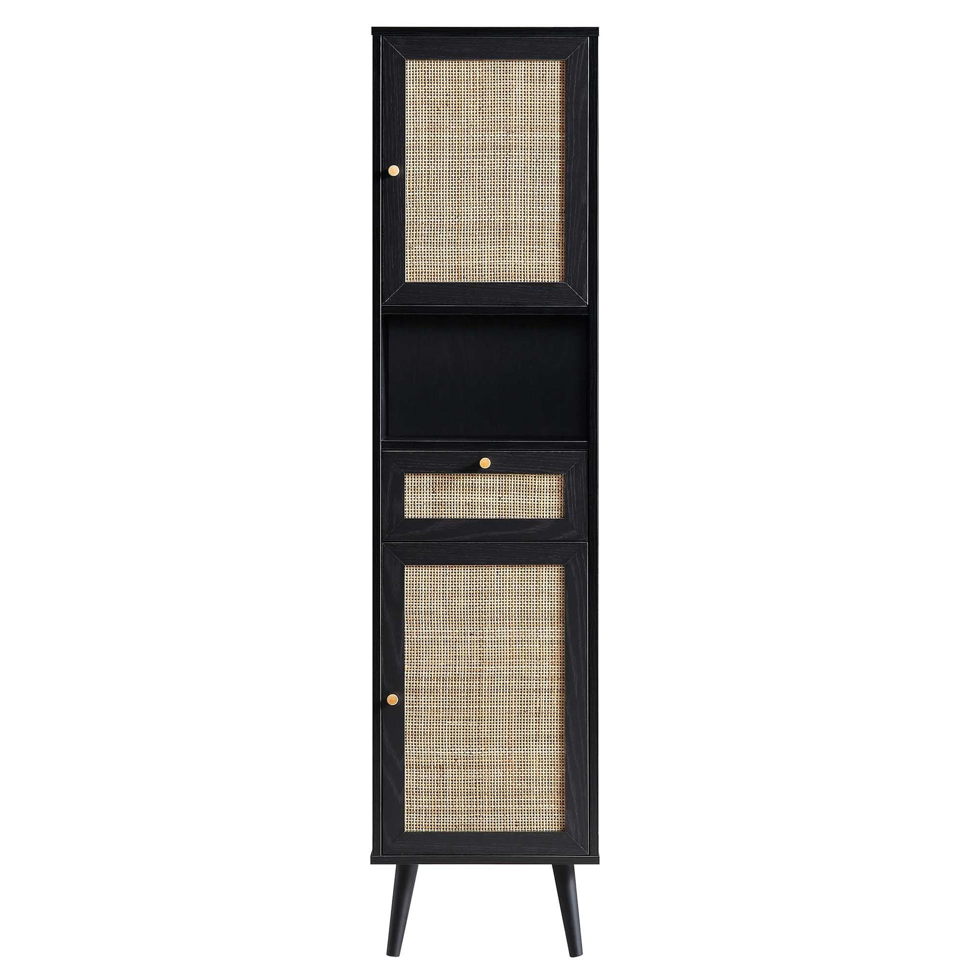 Meuble de salle de bain haut en rotin tressé Frances, noir