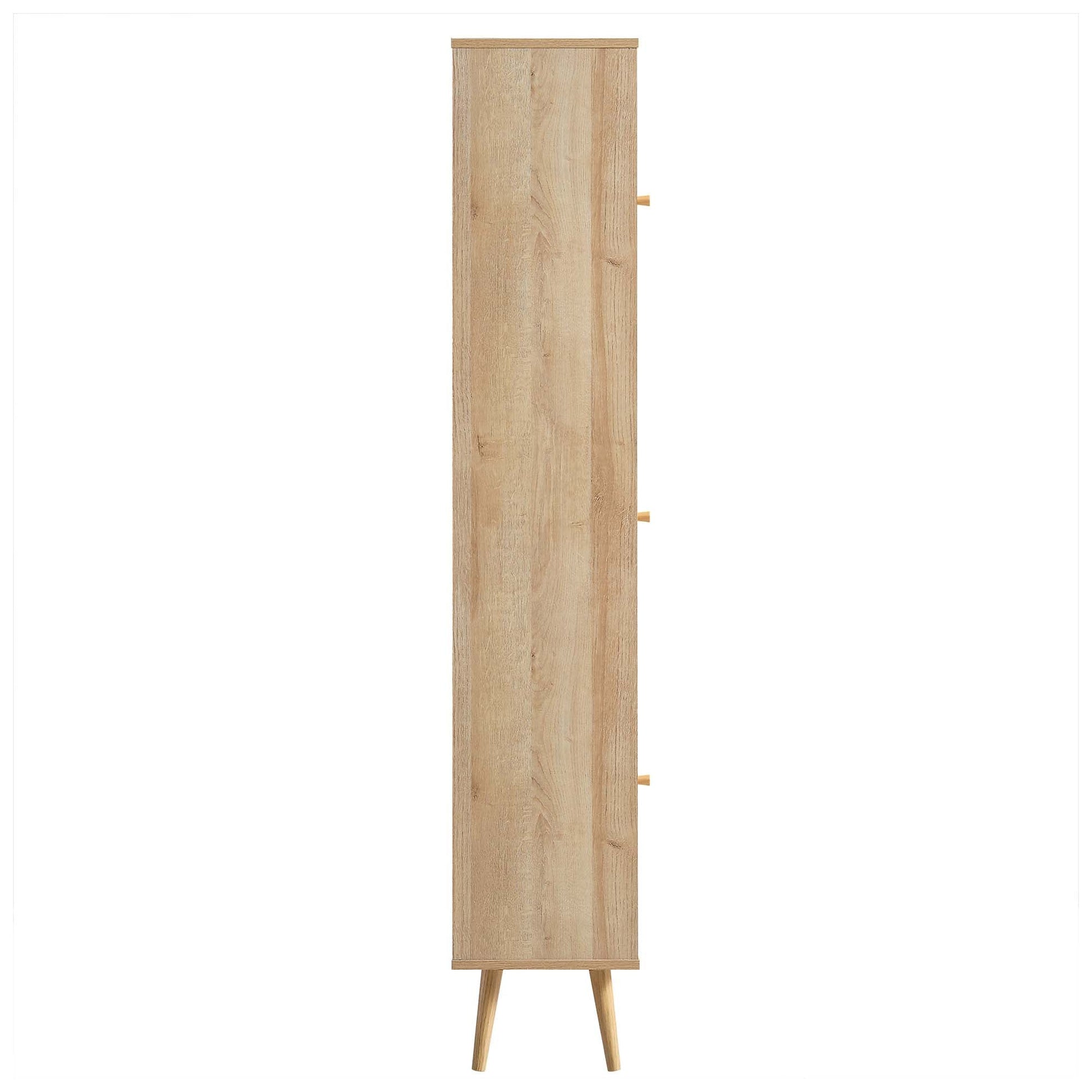- Les portes et le tiroir en rotin sont complétés par une poignée en bois massif, ajoutant à la nature minimaliste de l'unité