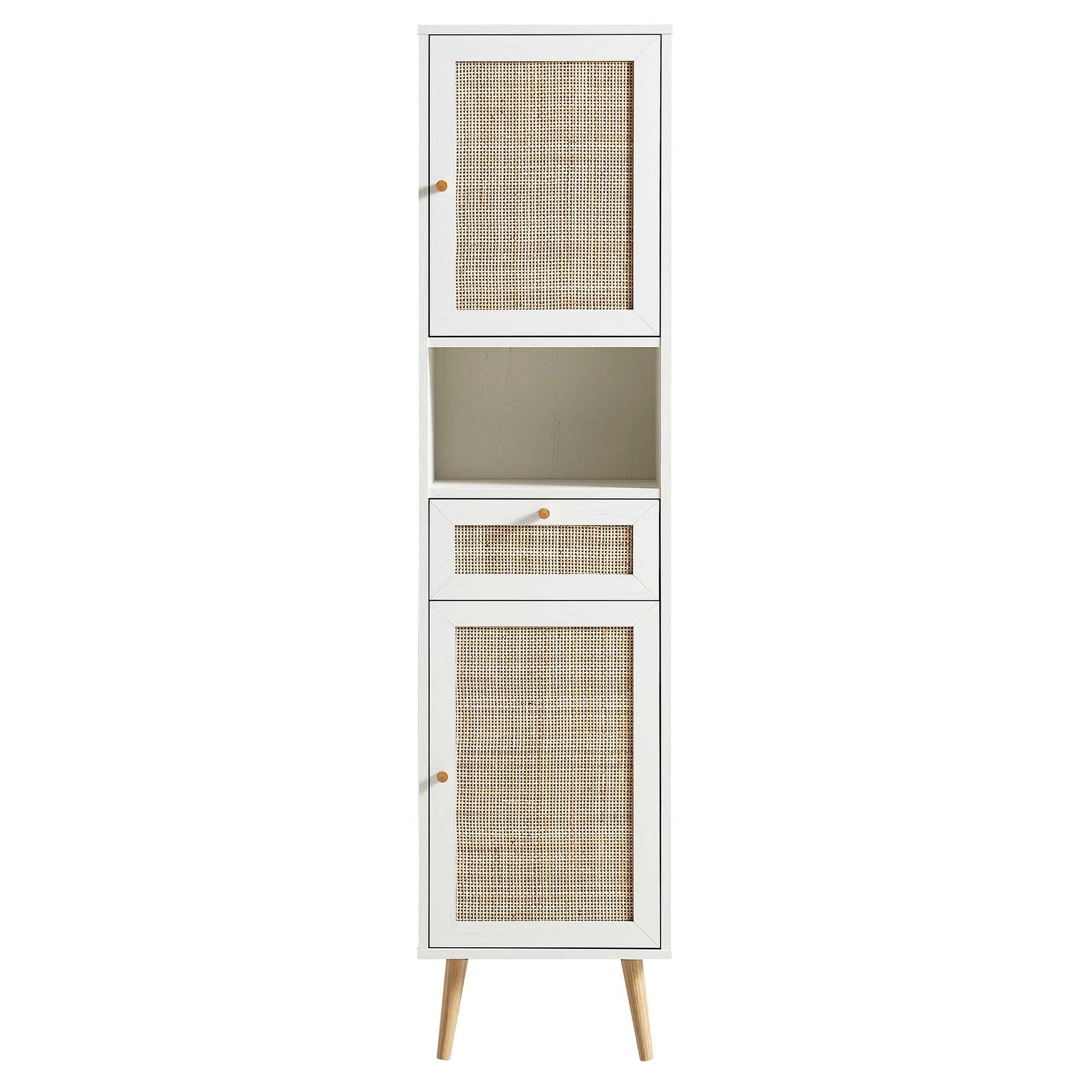 Meuble de salle de bain haut en rotin tressé Frances, blanc