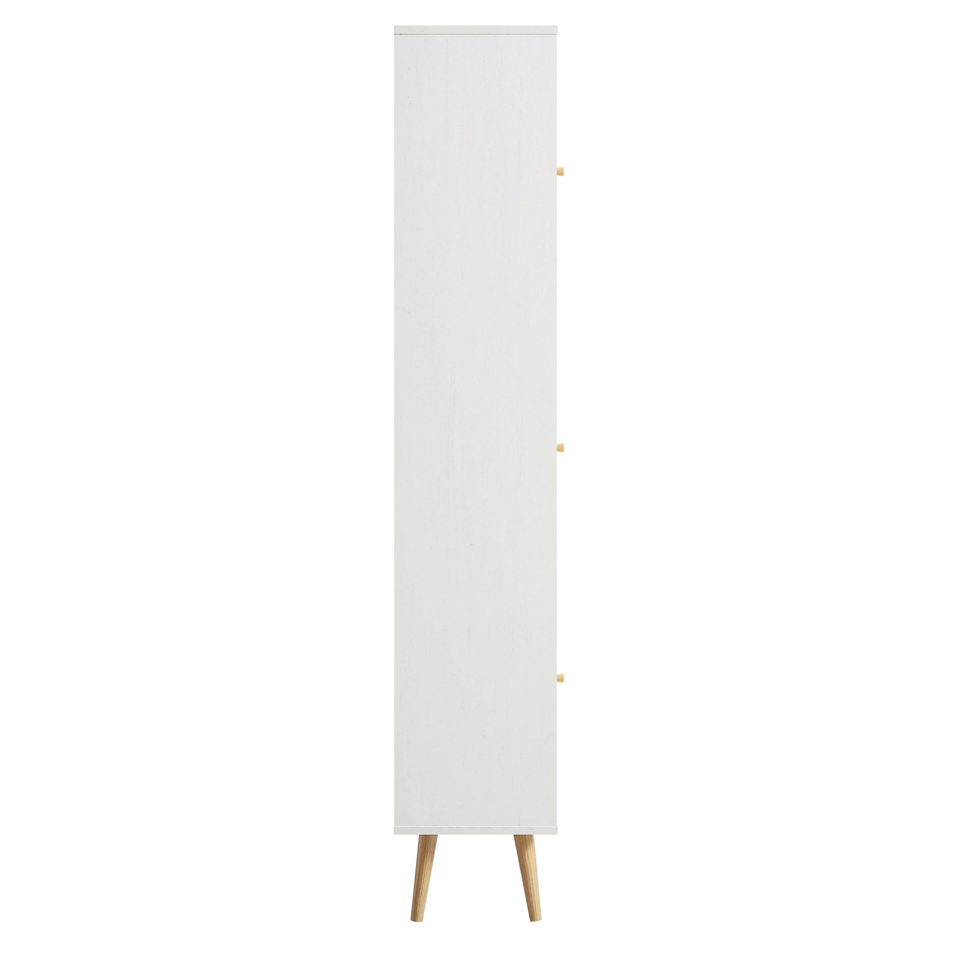 - Les portes et le tiroir en rotin sont complétés par une poignée en bois massif, ajoutant à la nature minimaliste de l'unité