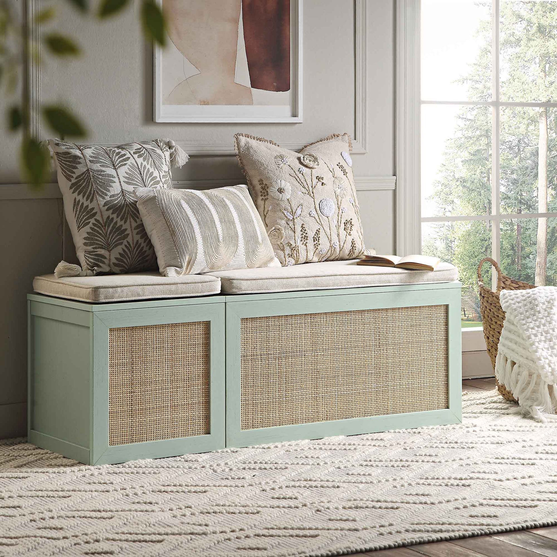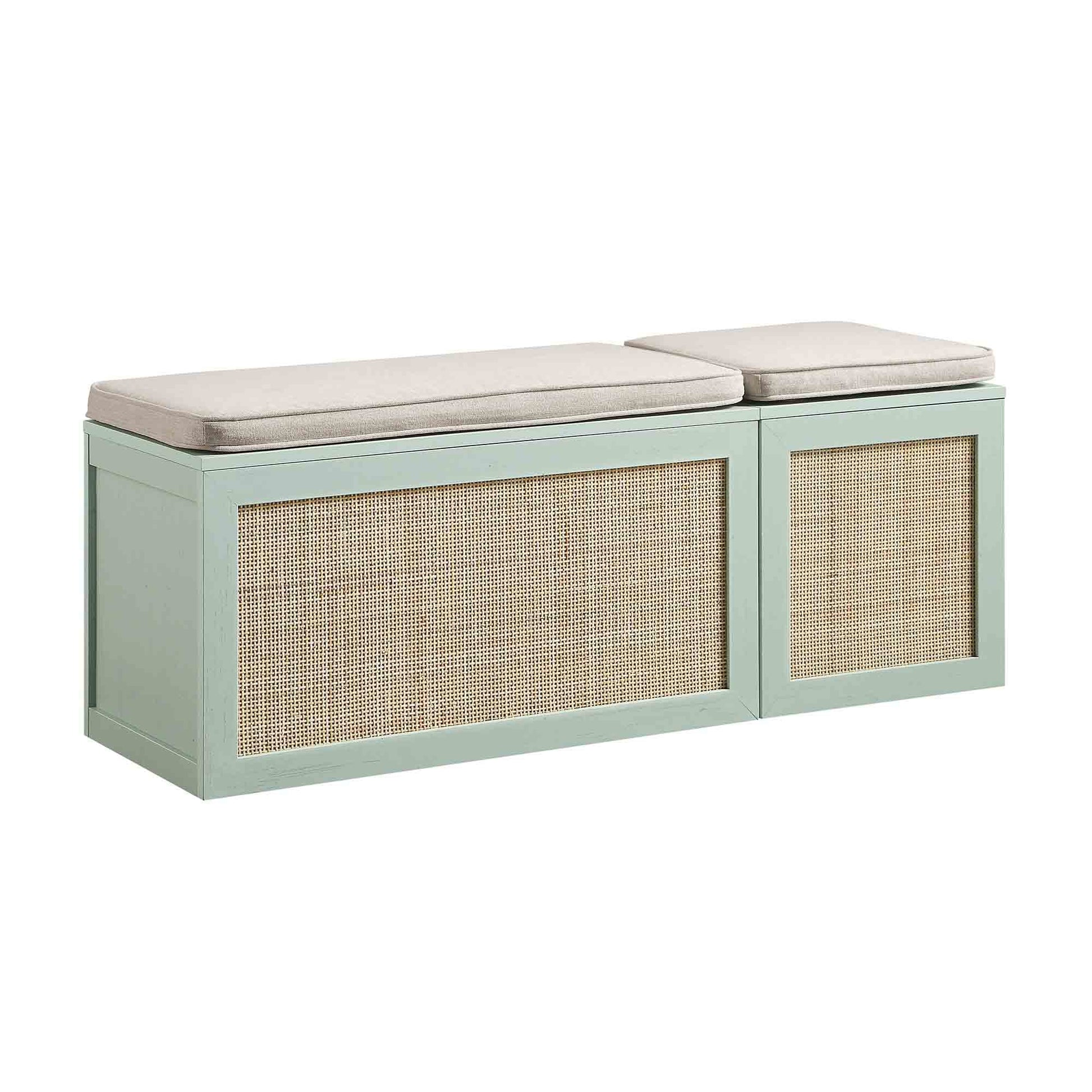 Ensemble de tabourets de rangement triples en rotin tressé Frances avec coussin, menthe