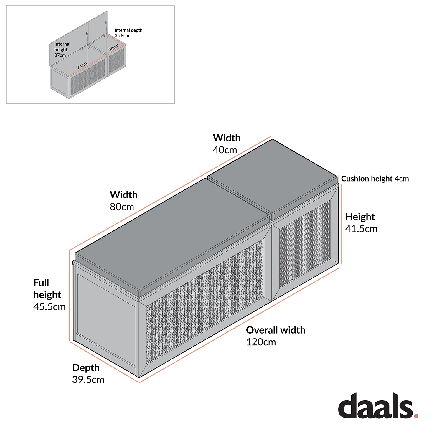 - Espace de rangement interne d'une seule unité : L 34 x P 35,8 x H 37 cm