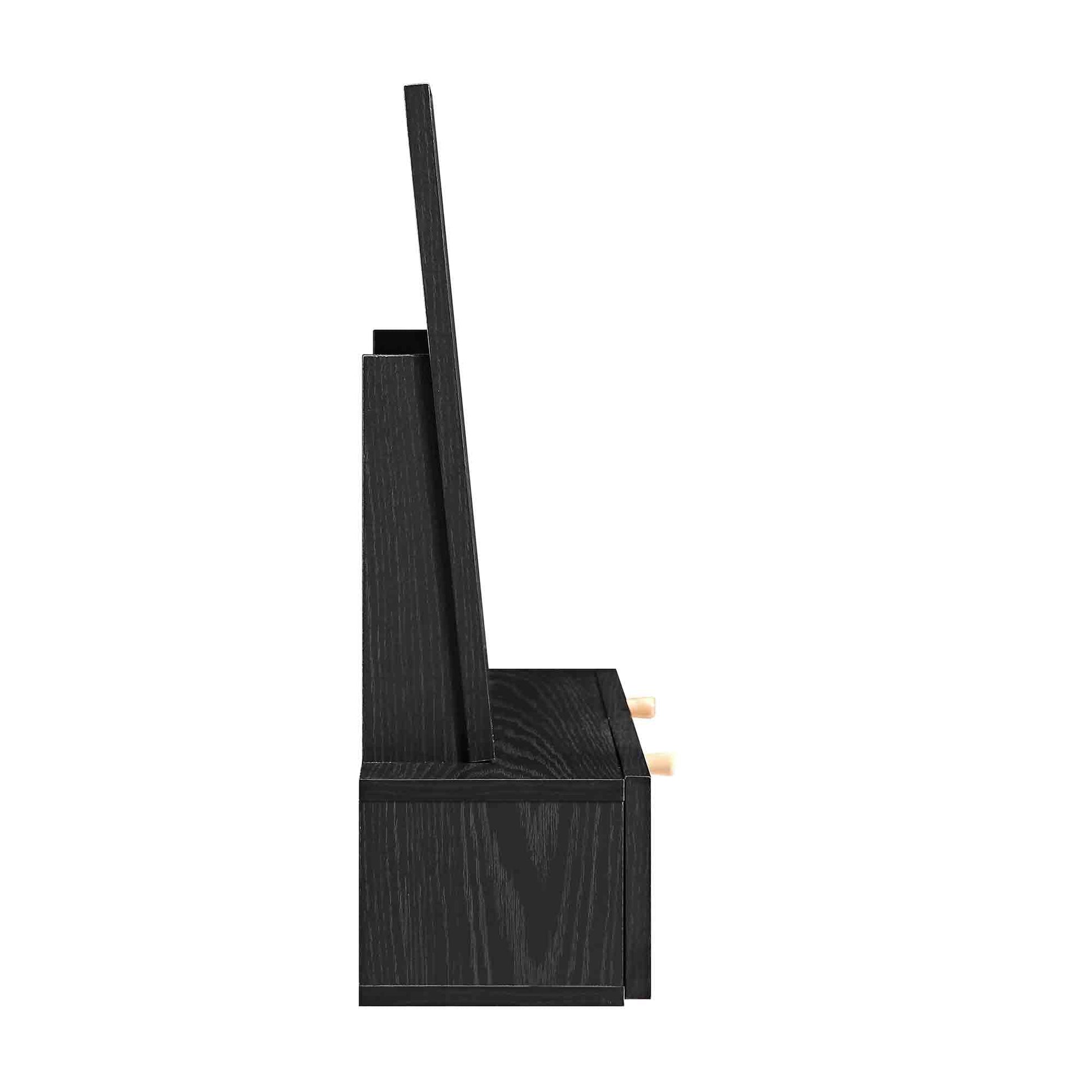 - Avec un grand miroir posé sur deux tiroirs spacieux, le miroir de courtoisie Frances offre suffisamment d'espace pour accéder facilement à vos accessoires et cosmétiques tout en vous préparant, de jour comme de nuit.