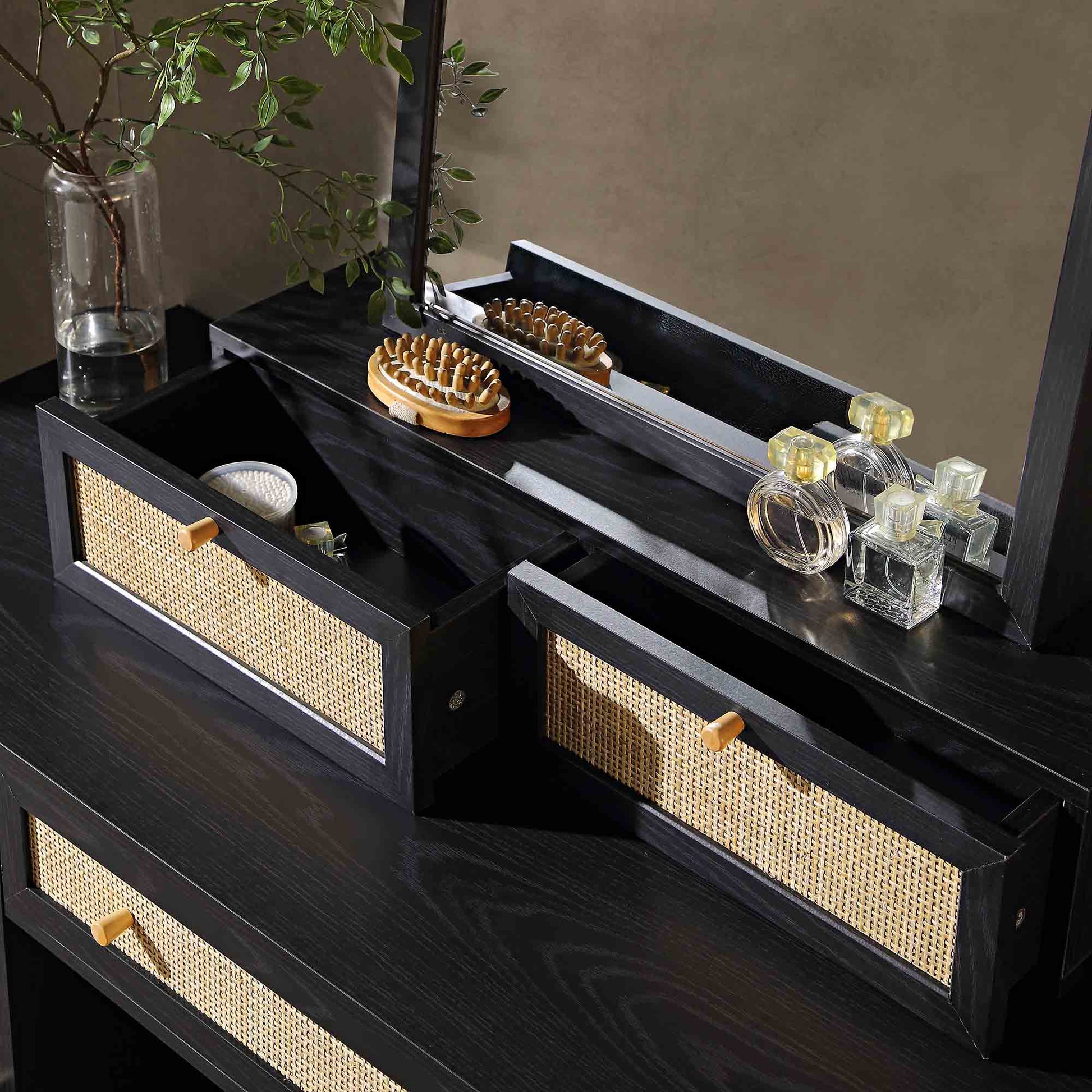 - Assurez-vous de vous habiller avec style avec notre miroir de vanité en rotin tissé Frances.