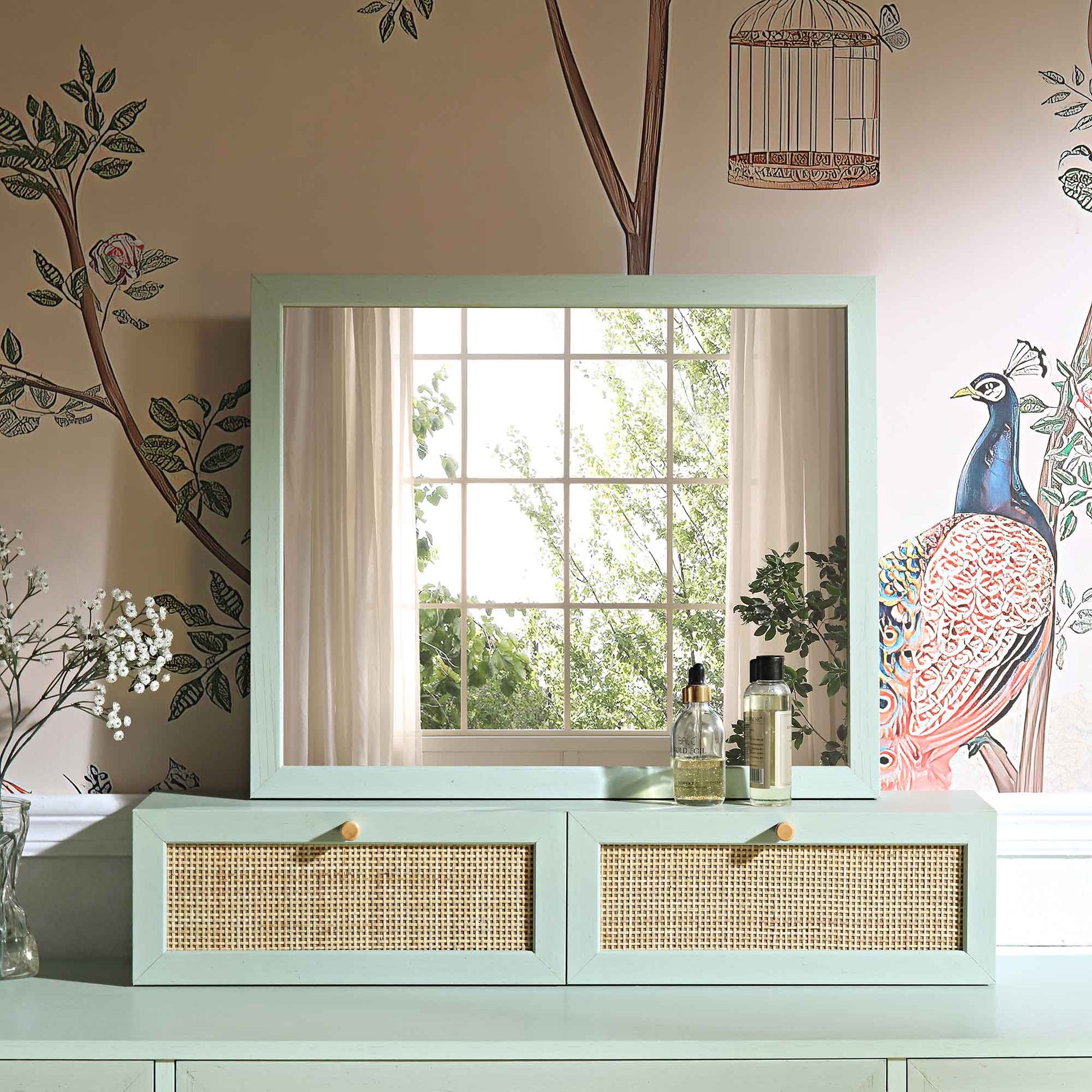 Miroir de courtoisie en rotin tressé Frances, menthe