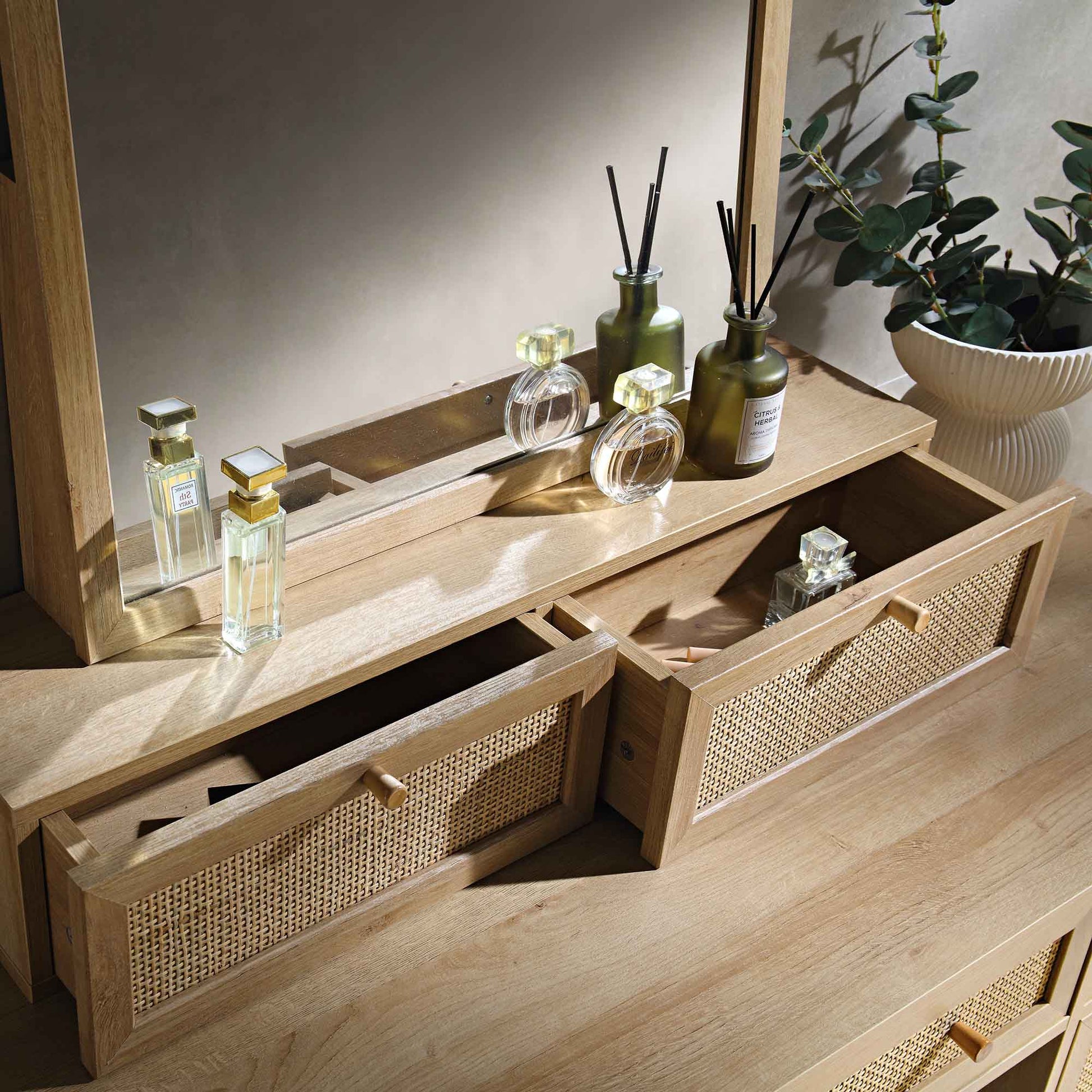 - Assurez-vous de vous habiller avec style avec notre miroir de vanité en rotin tissé Frances.