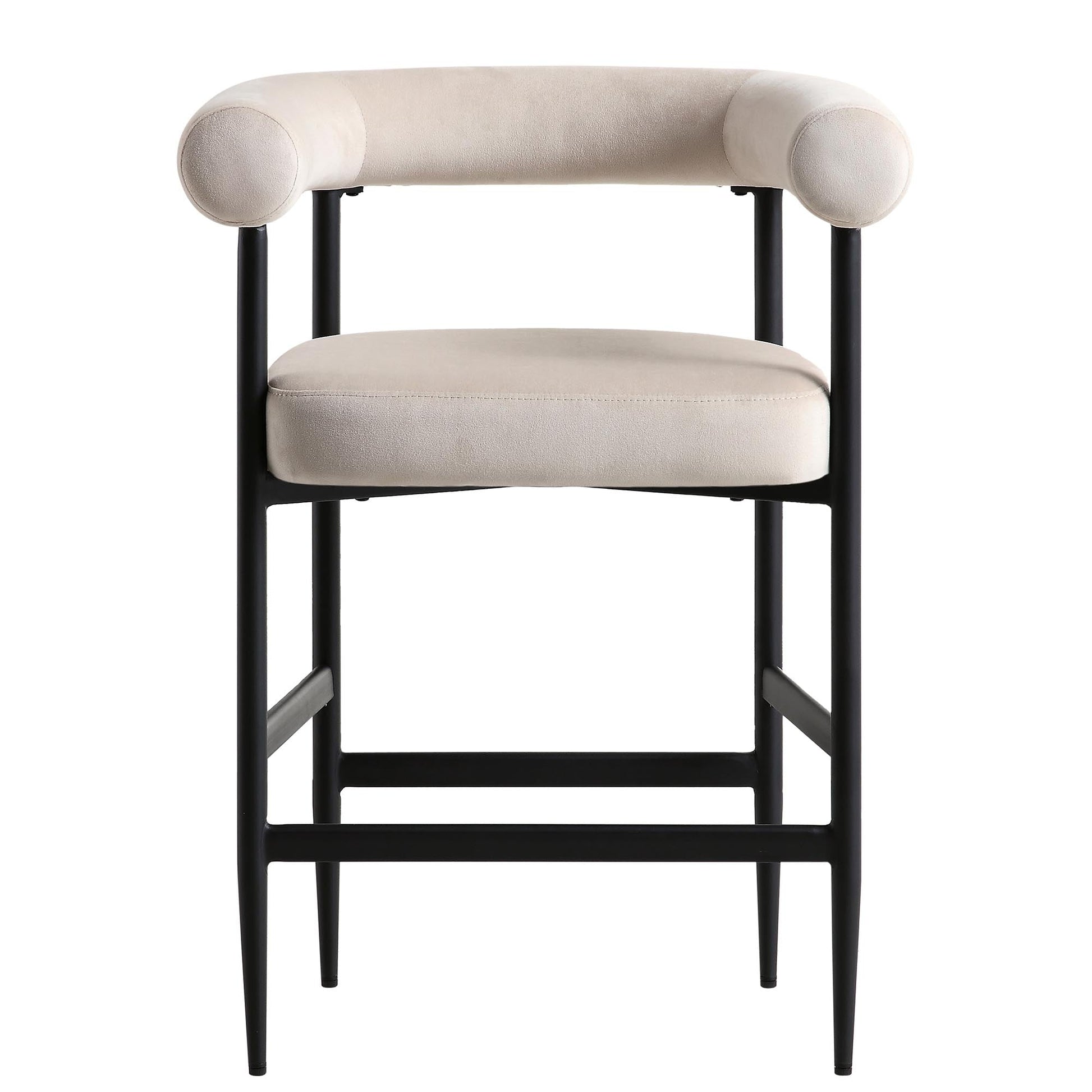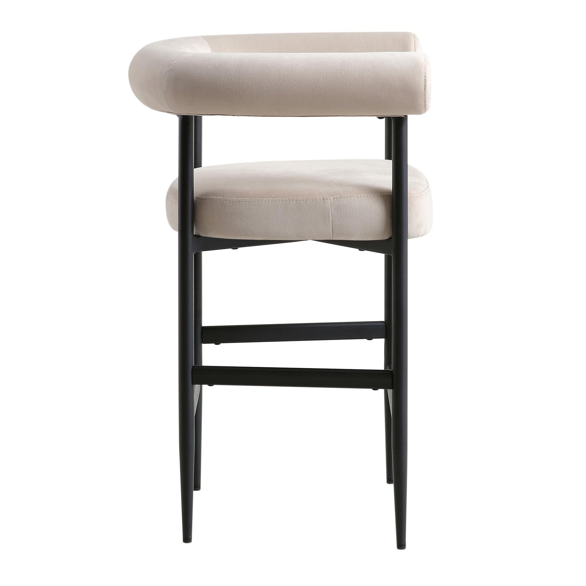 Tabouret de bar Fulbourn en velours champagne avec pieds noirs