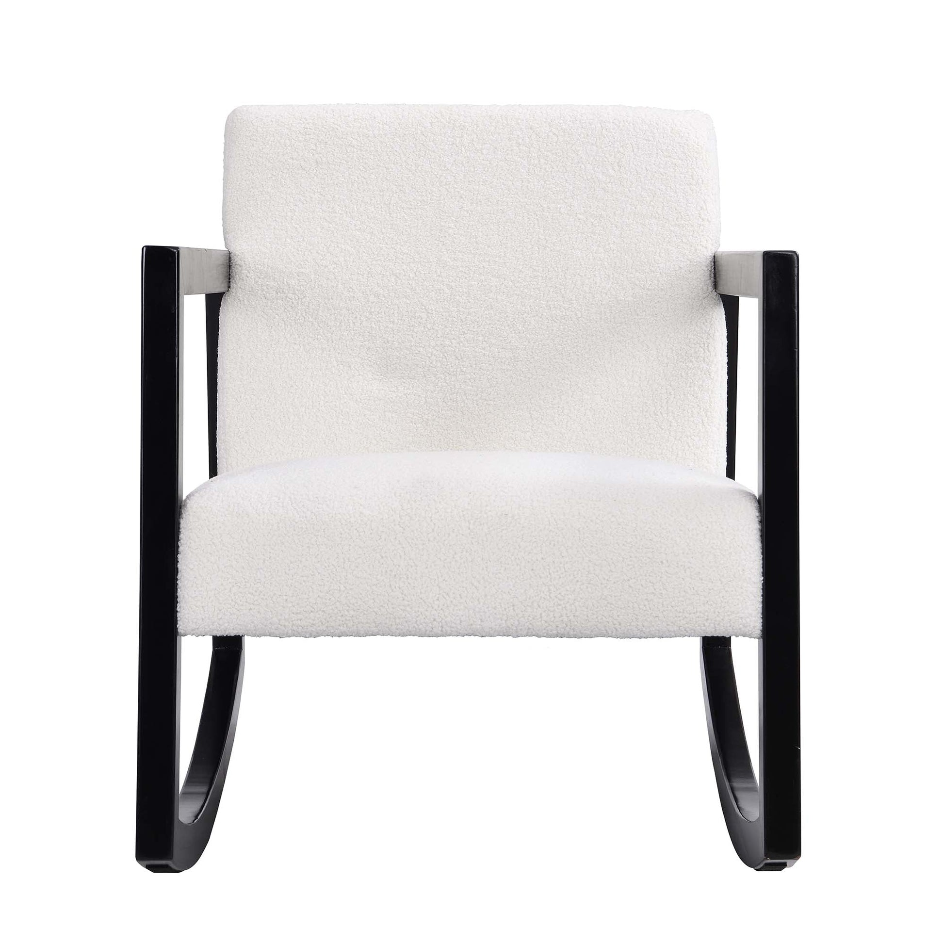Fauteuil à bascule Fyne Ecru Boucle, cadre noir