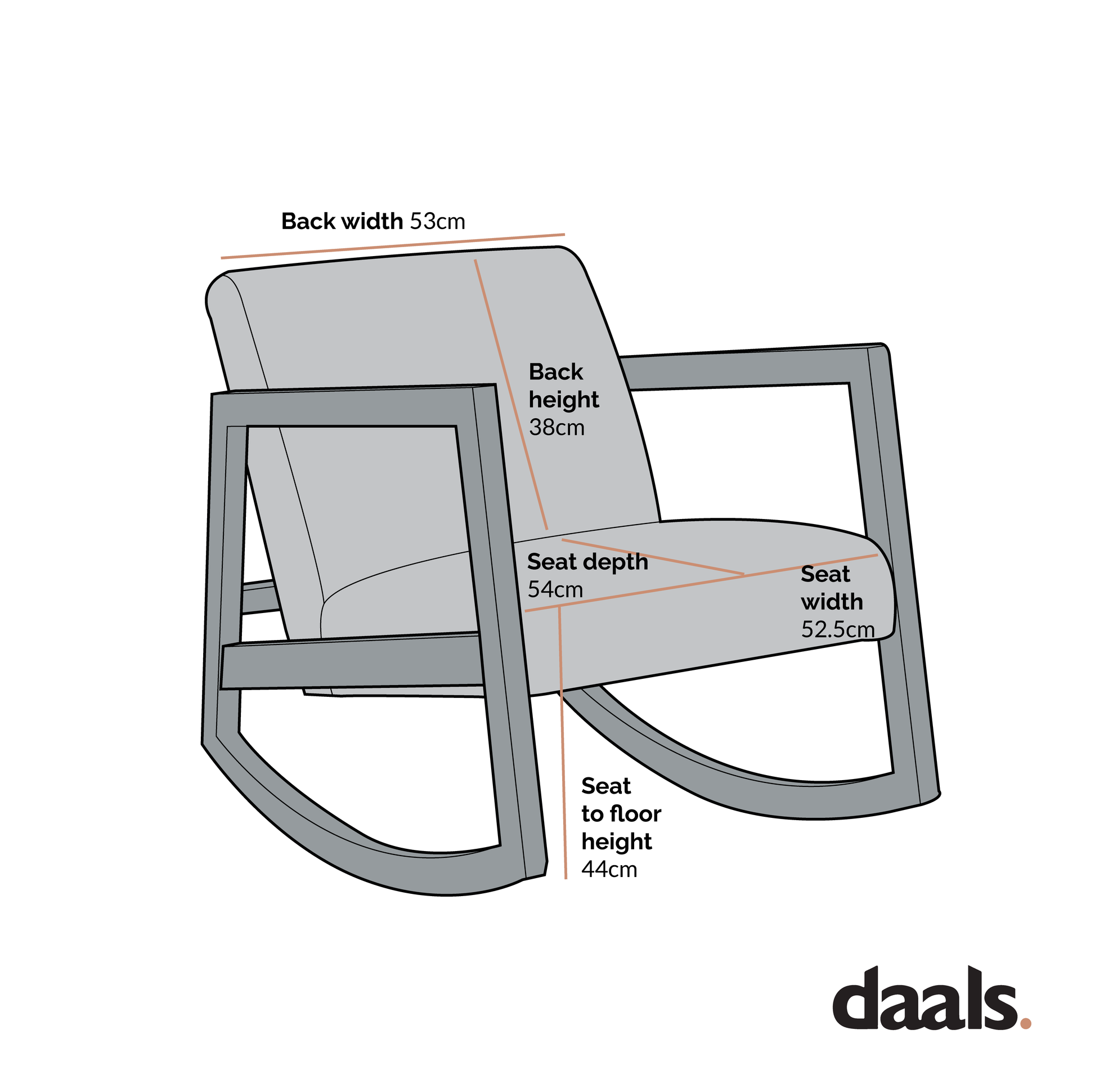 - Inspiré des chaises à bascule traditionnelles, notre fauteuil Fyne est une interprétation joyeuse et moderne, réimaginée avec un dossier et un siège carrés rembourrés et un cadre en bois massif de style milieu du siècle.