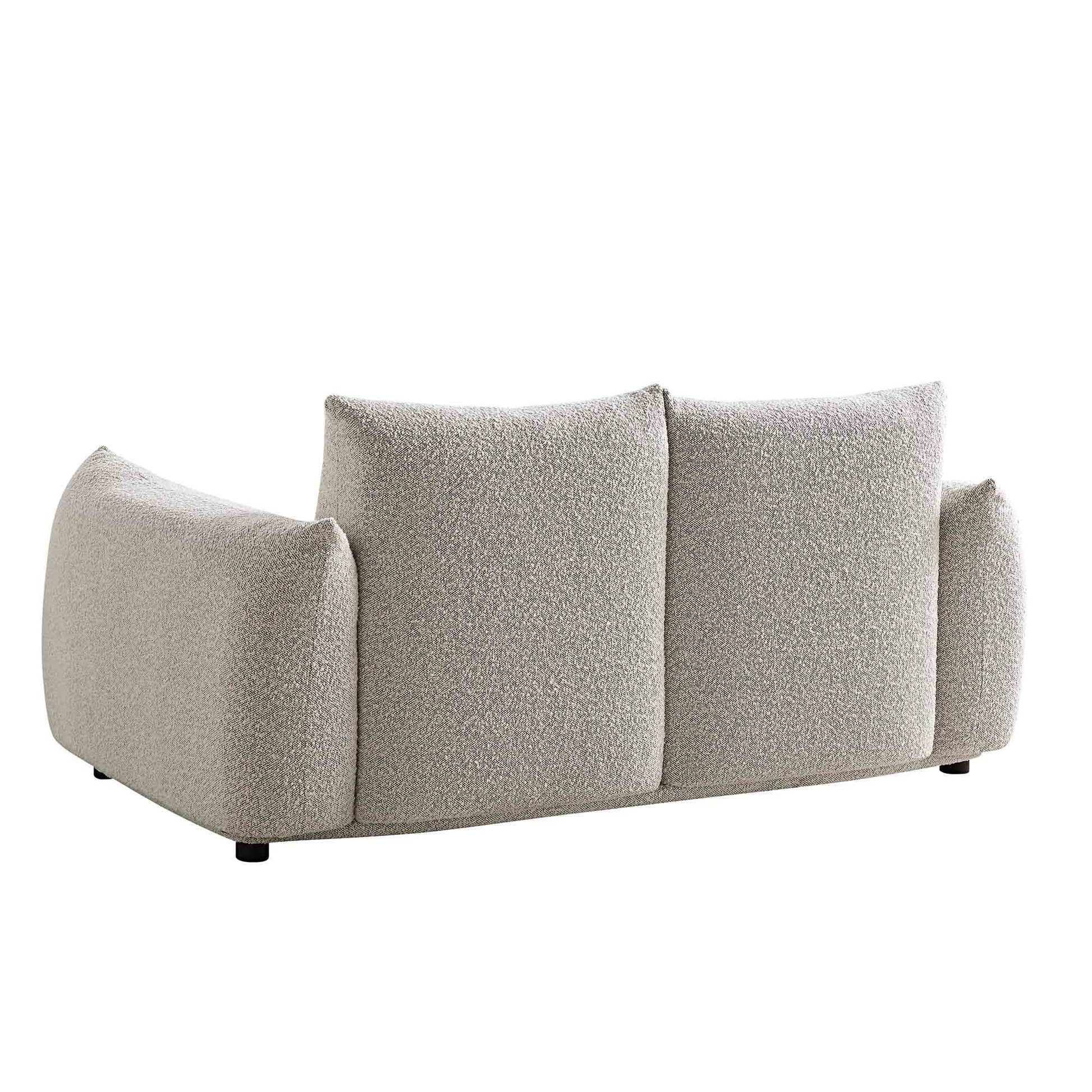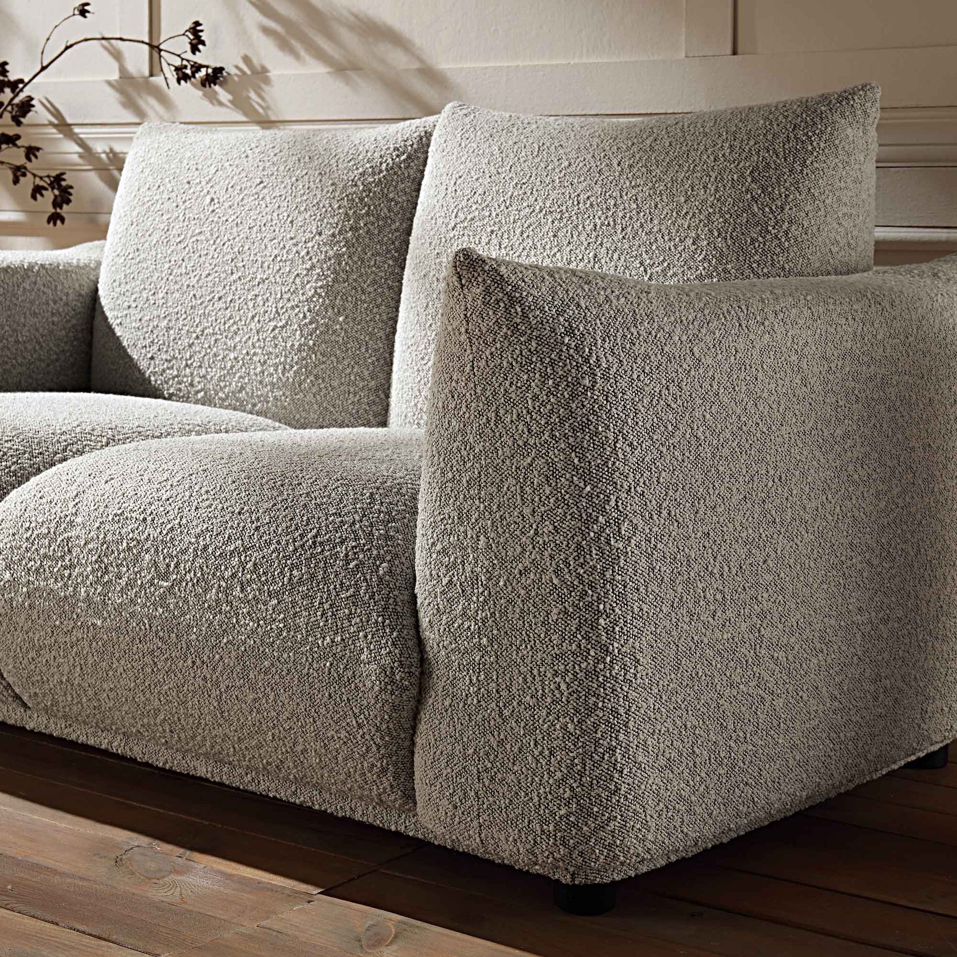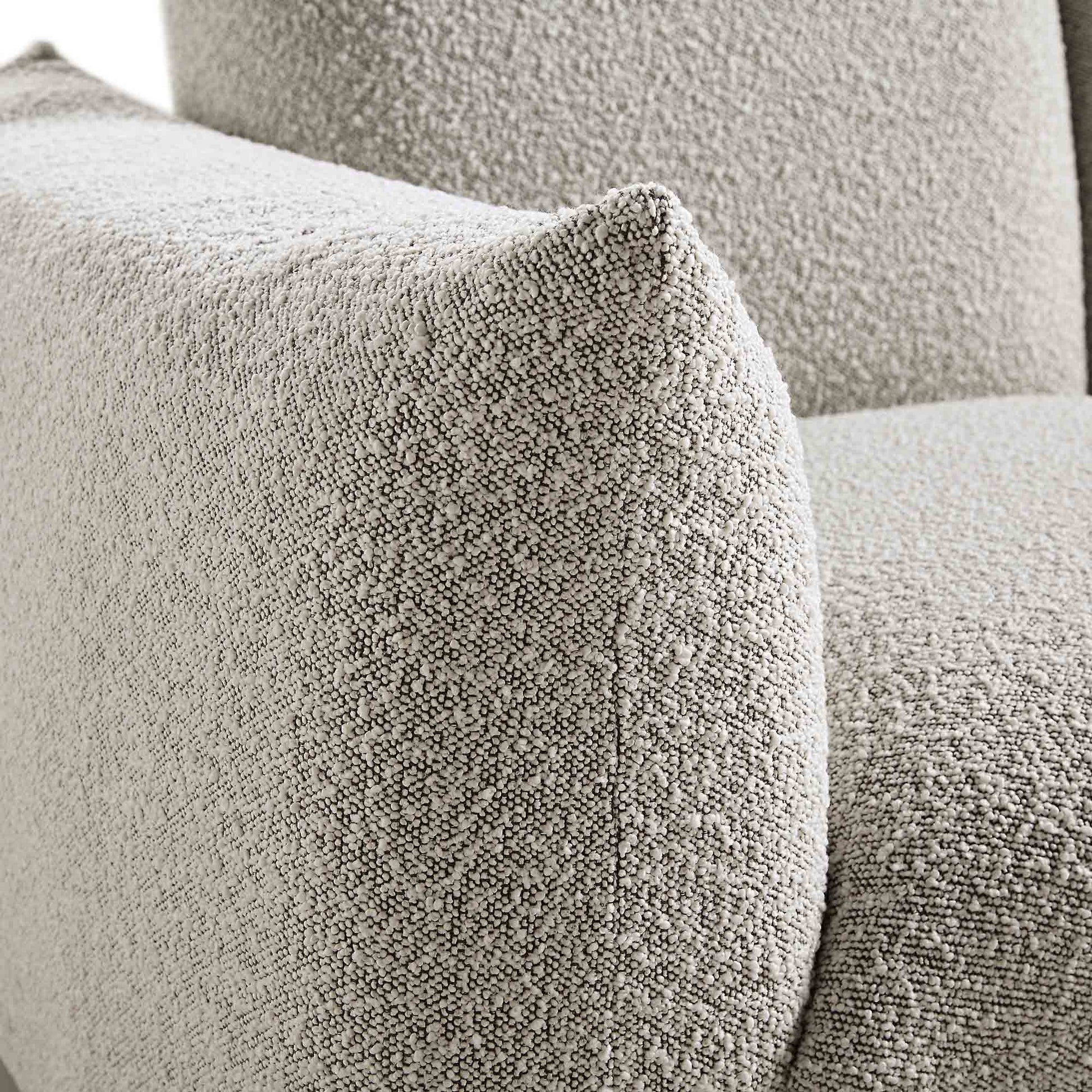 - Recouvert d'un tissu bouclé gris brume chic pour un look contemporain.