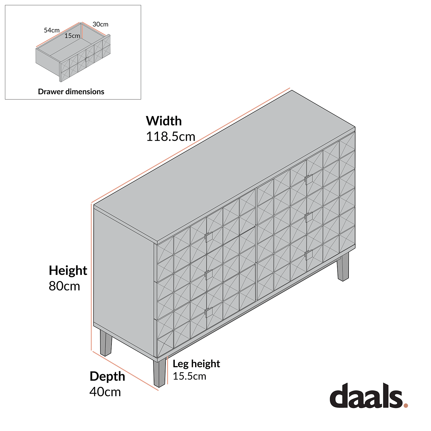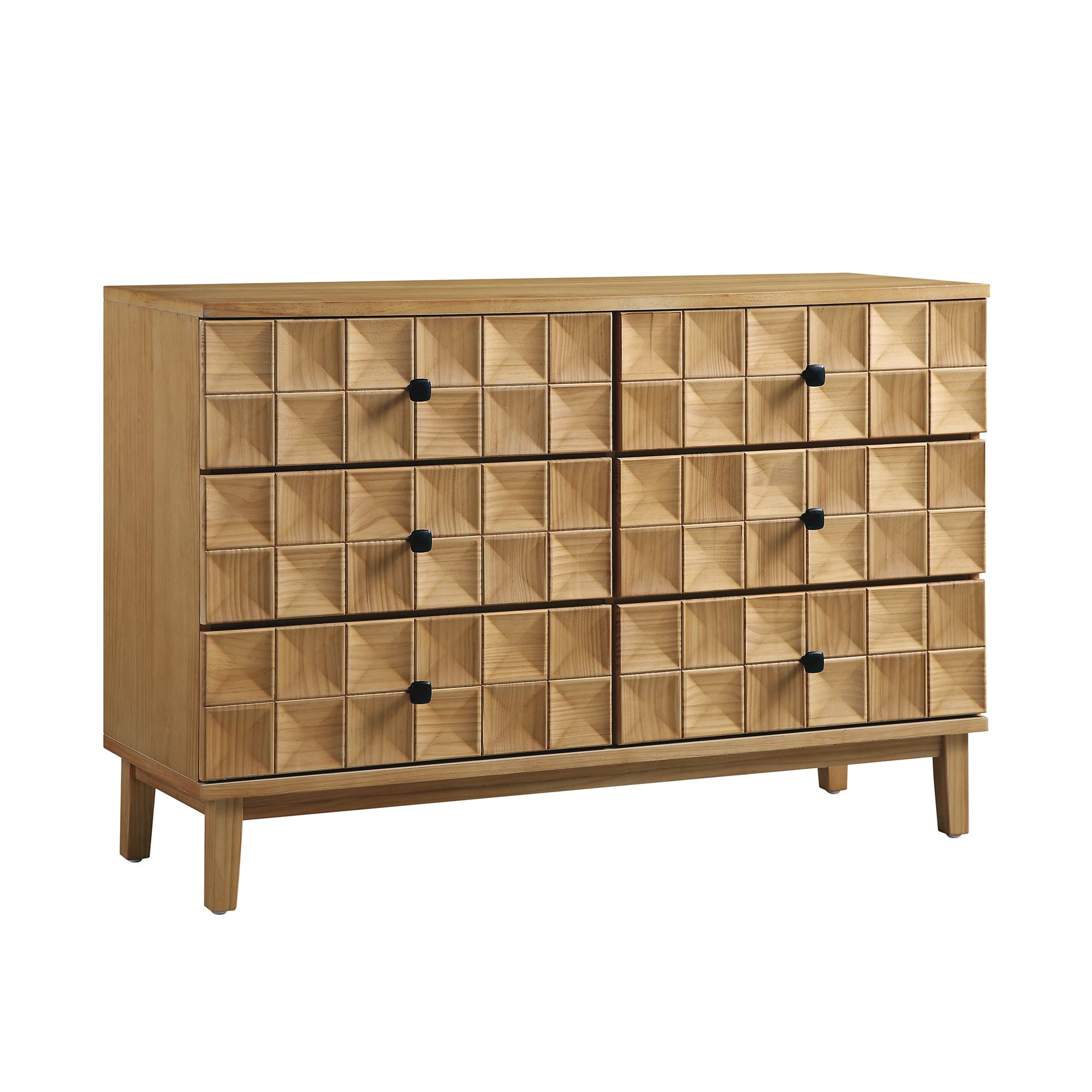 - Dotée de façades de tiroirs à motifs géométriques, notre commode Gibbs à 6 tiroirs est fabriquée en bois de pin massif fini avec une peinture transparente, mettant en valeur le grain riche du bois naturel.