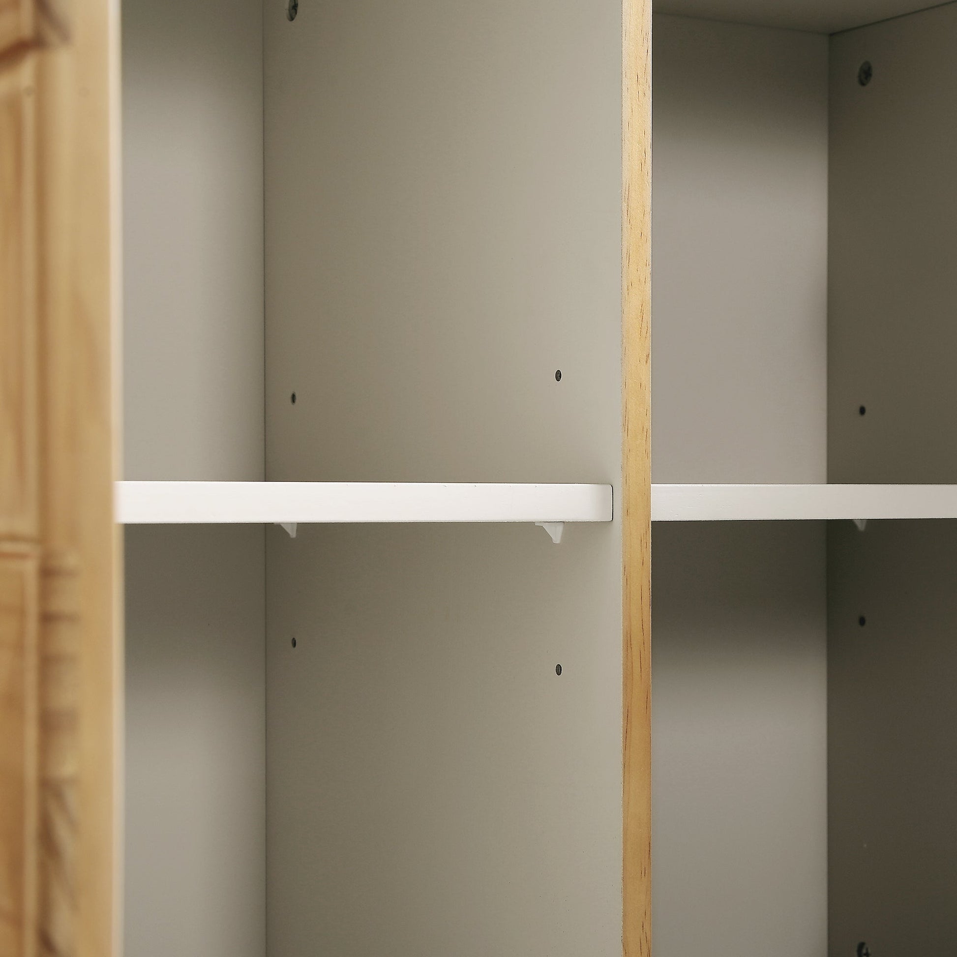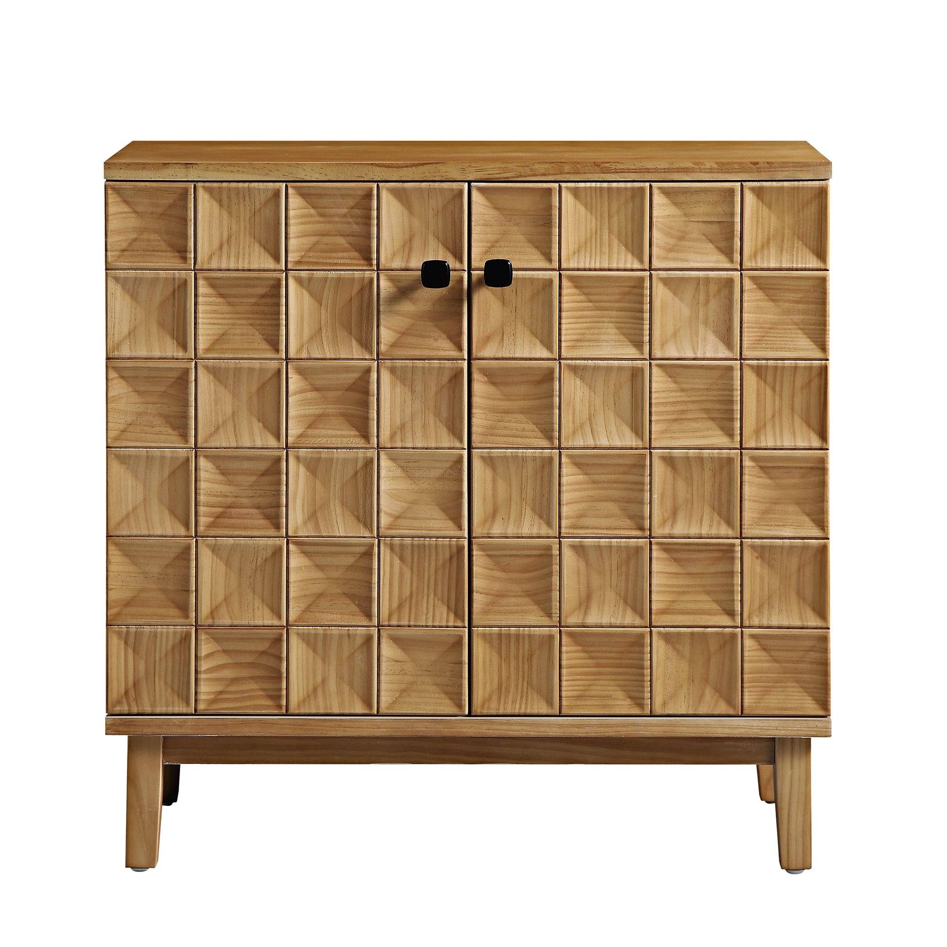 - Doté de façades de portes à motifs géométriques, notre petit buffet Gibbs est fabriqué en bois de pin massif fini avec une peinture transparente, mettant en valeur le grain riche du bois naturel.