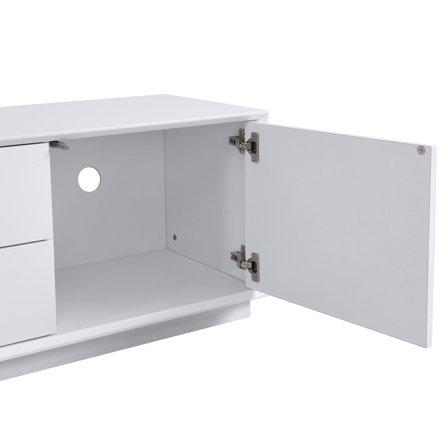 Avec sa finition PU blanc mat, le meuble TV Glen Tree Bark affiche un design épuré. Composé de deux portes et de deux tiroirs, il offre un vaste espace de rangement pour vos CD, DVD, gadgets et accessoires.