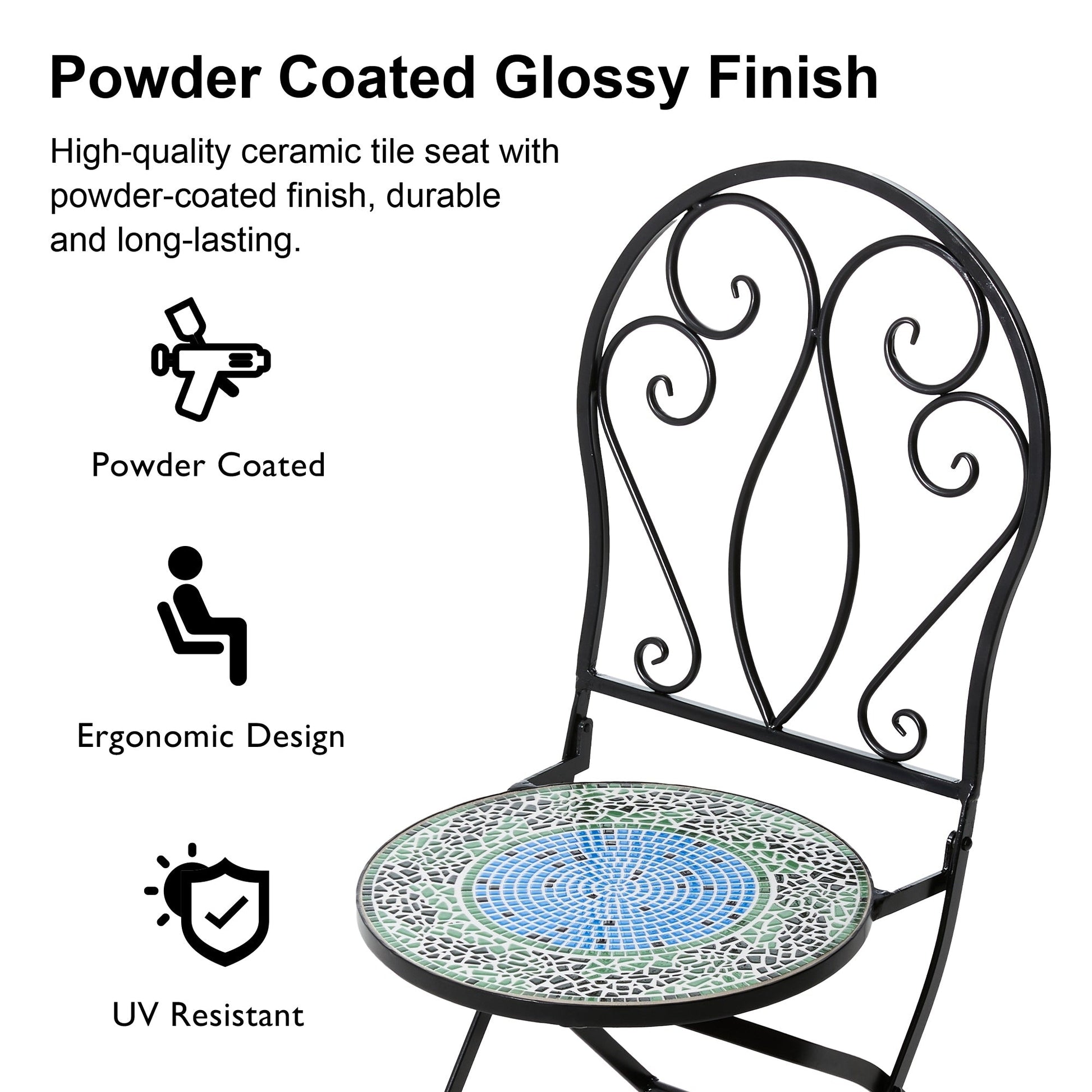 Ensemble bistro pliant en métal d'extérieur Glitzhome, 3 pièces : table et chaises de patio