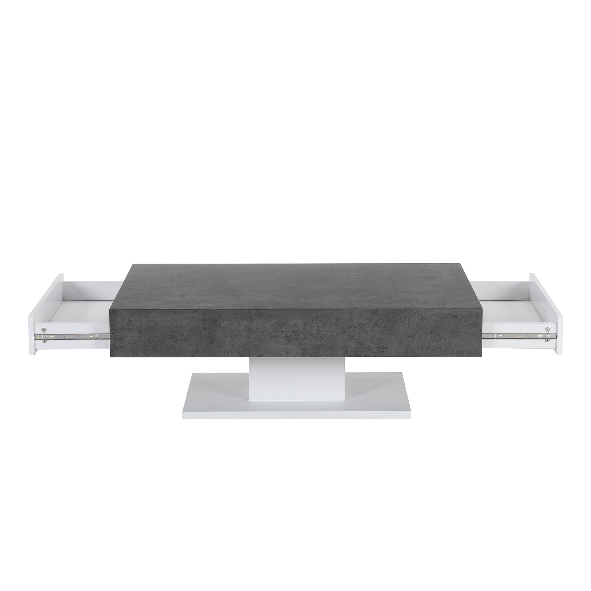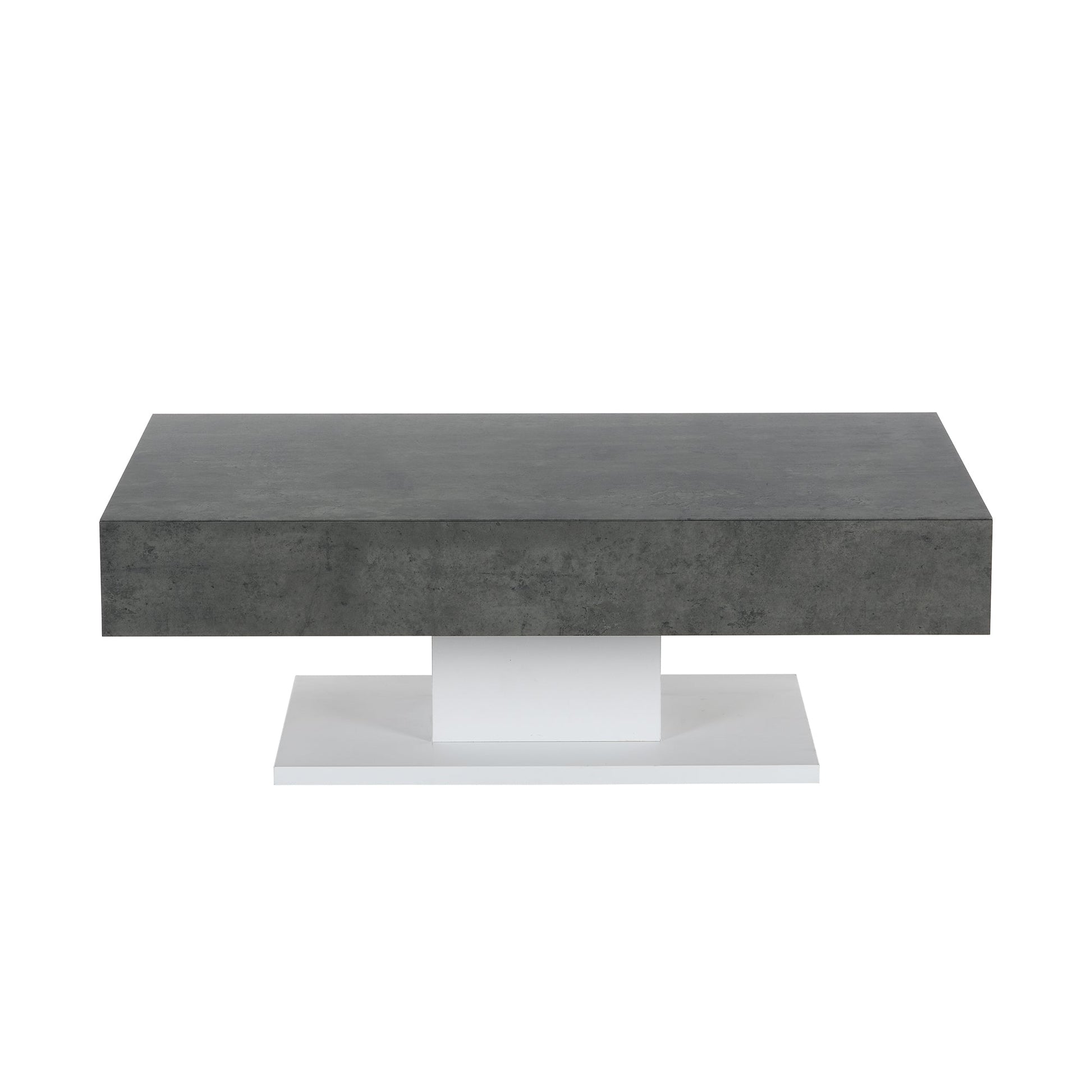 - Le plateau effet béton gris contrasté et la base blanche mate en font une pièce élégante dans votre espace de vie avec un espace de rangement discret pour désencombrer la pièce.