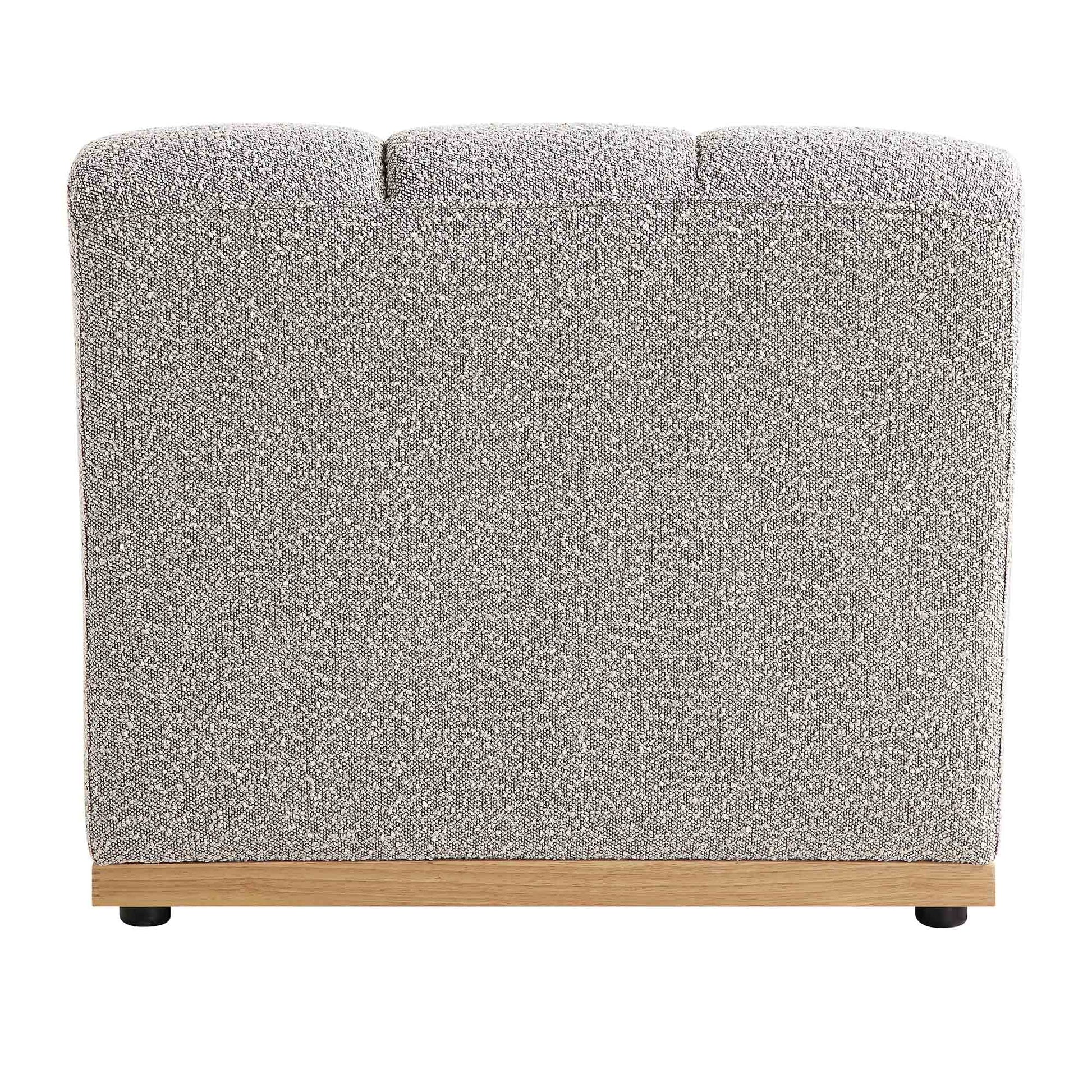 - Revêtus d'un magnifique tissu bouclé taupe, les modules de canapé sont montés sur des bases en bois massif naturel.