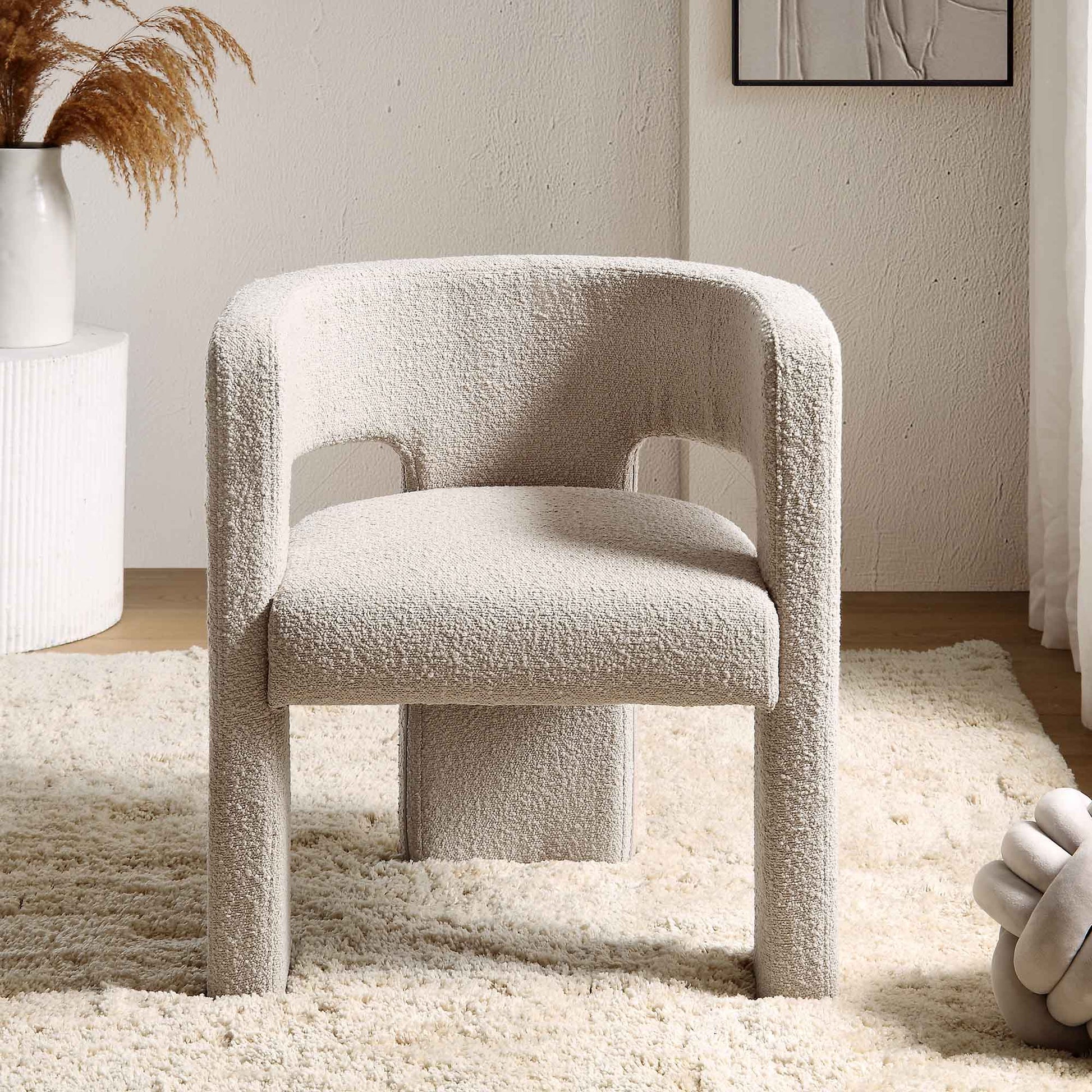 - Le siège bien rembourré et recouvert d'un magnifique tissu bouclé taupe clair fait de cette chaise un choix idéal pour votre maison chaleureuse.