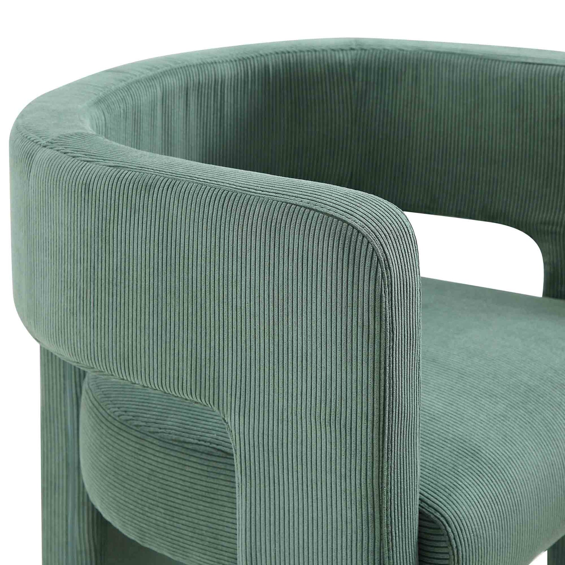 - Un siège bien rembourré et un joli revêtement en velours côtelé de couleur vert sauge font de cette chaise un choix chic idéal pour les intérieurs modernes.